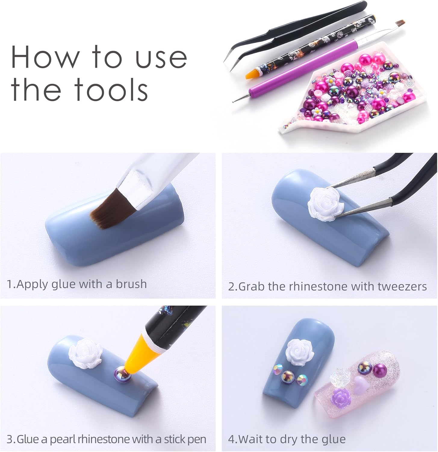 • Useful tools - These pearls and rhinestones have a flat back, which is excellent for easy placement.and you can pick up any large or small pearls and rhinestones with the crayons we bring along. And use the brush to smooth out the Gel, these tools will work very well