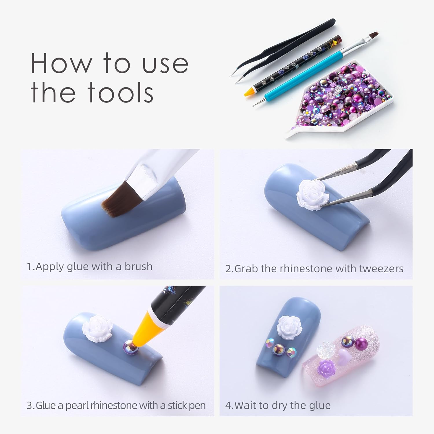 • 💎Useful tools - These pearls rhinestones have a flat back, which is excellent for easy placement.and you can pick up any large or small pearls and rhinestones with the crayons we bring along. And use the brush to smooth out the glue, these tools will work very well.