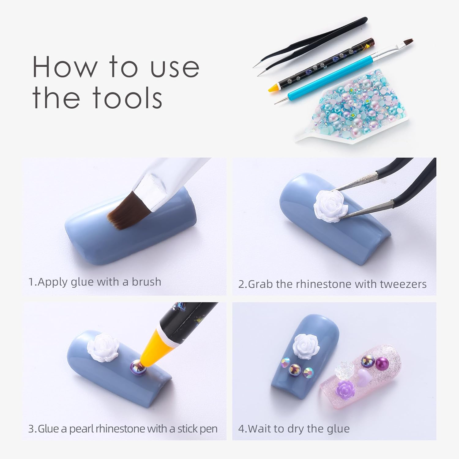 • Useful tools - These pearls and rhinestones have a flat back, which is excellent for easy placement.and you can pick up any large or small pearls and rhinestones with the crayons we bring along. And use the brush to smooth out the Gel, these tools will work very well