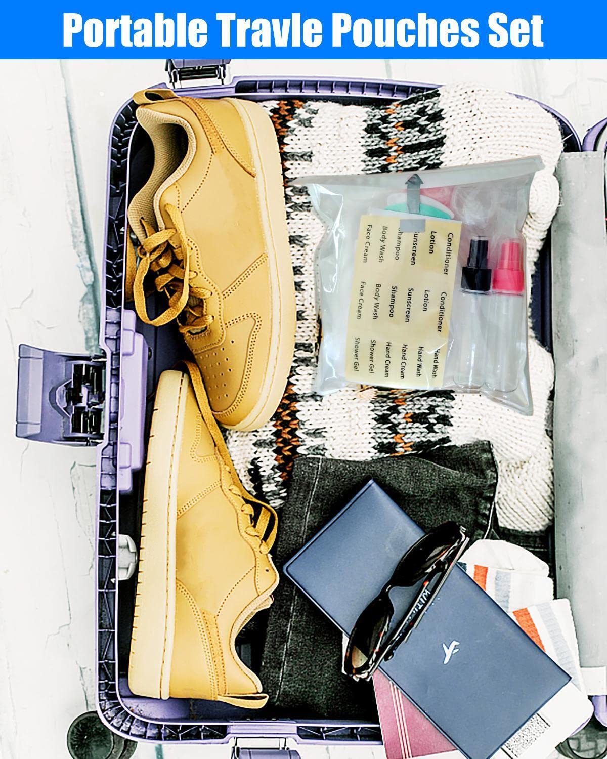 17 Pack Travel Pouches for Toiletries,TSA Approved,Travel Size Portable Containers,Stand Up Pouch,Refillable Travel Accessories for Shampoo Conditioner Lotion Soap Liquids (C-17pcs)