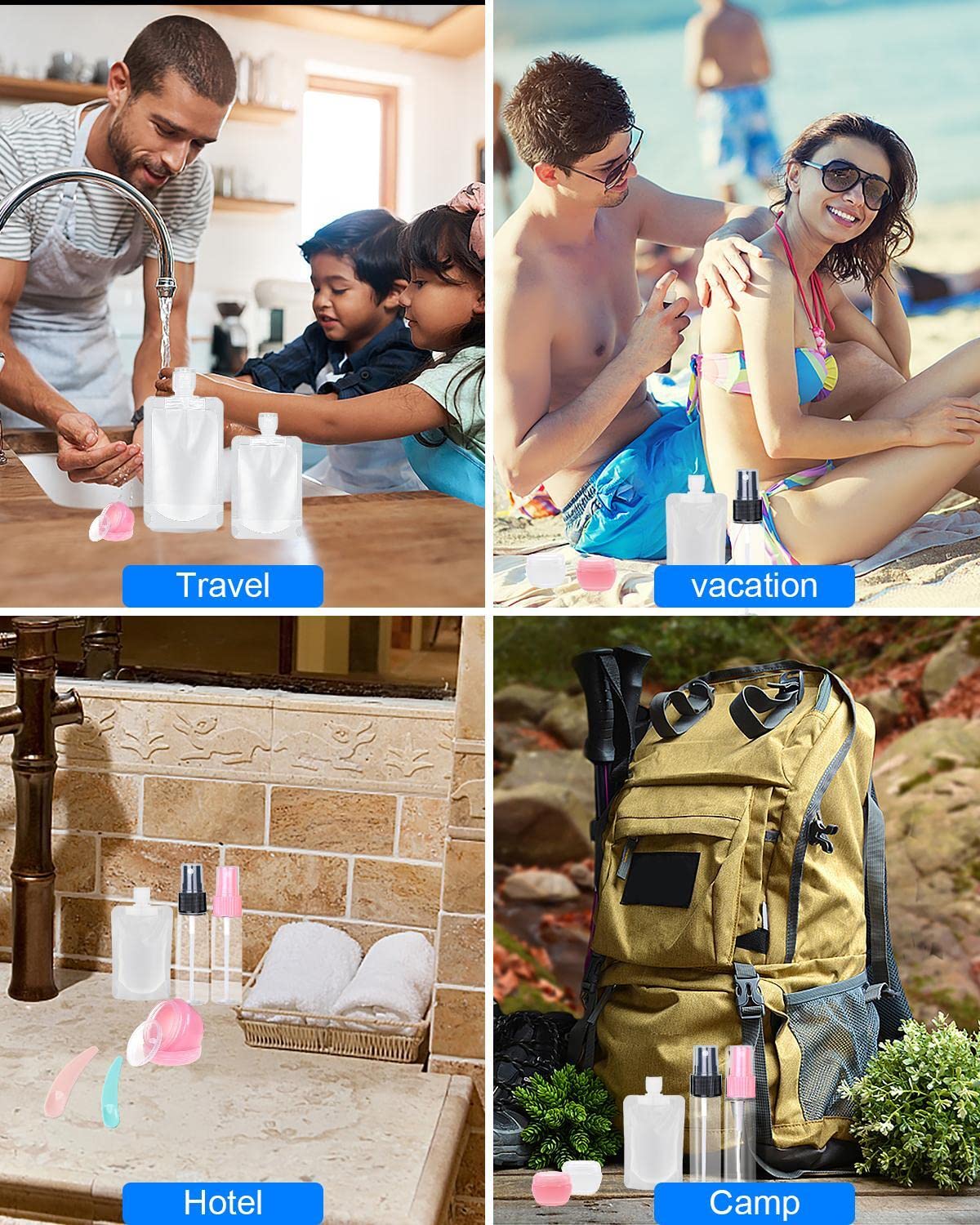 • 【Easy to Refill, Clean And Portable】This sweet travel size Pouches has a wide opening design, easy to fill, just unscrew the top cap, so that we can easily refill the liquid or clean the inside. The small spoon and small funnel can help you fill or clean out more easily.Enjoy the cheerful offered by these Travel Bottles Set manner for an extended period of time.