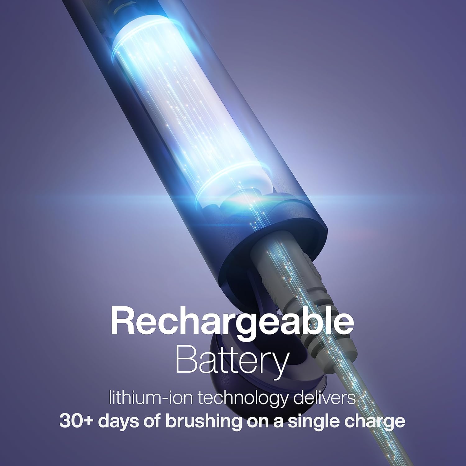 • Modern Technology: Icon features 2 brushing modes, and a built-in smart timer that signals every 30 seconds and shuts off after 2 minutes. Its lithium-ion battery holds a charge for 30+ days of brushing.