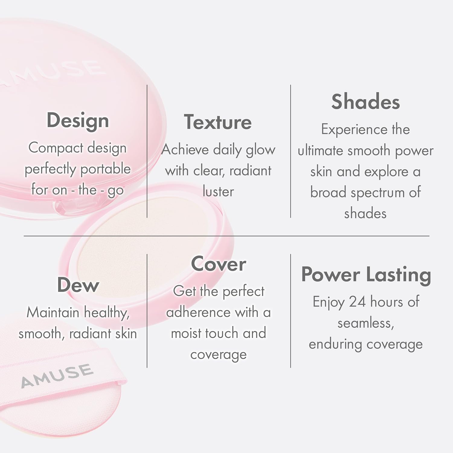 Amuse SEOUL DEW POWER VEGAN CUSHION FOUNDATION | Dewy, glow, long-lasting, double coverage, clean beauty, lightweight, natural look, foundation for sensitive skin, hydrating cushion (1.5 NATURAL)