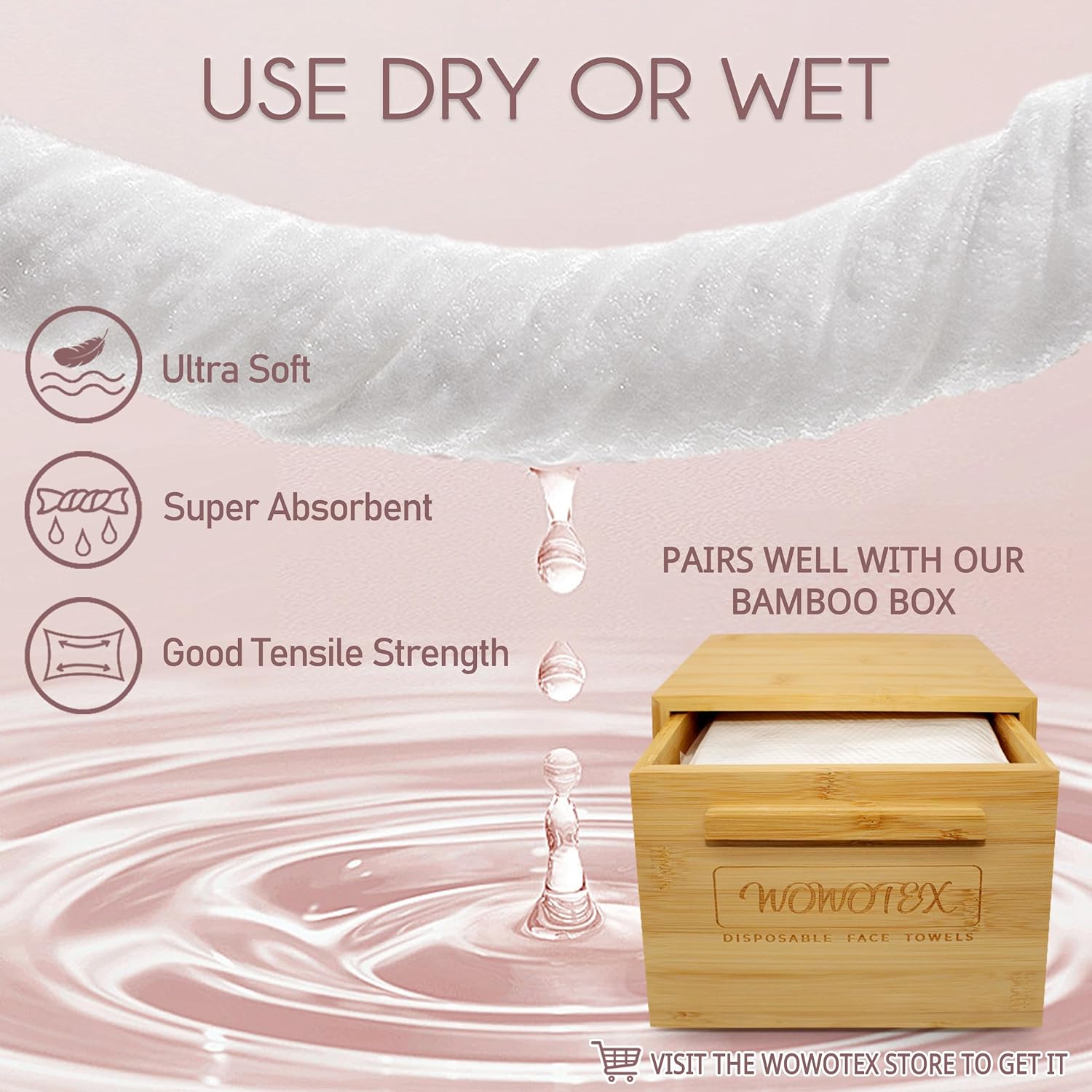 • EXCELLENT FABRIC : WOWOTEX disposable face towels are 100% PURE COTTON which are 100% BIODEGRADABLE. WOWOTEX disposable face towel can be used wet or dry, our face towel is super soft and highly absorbent, with good tensile strength, which can bring users a high quality user experience.