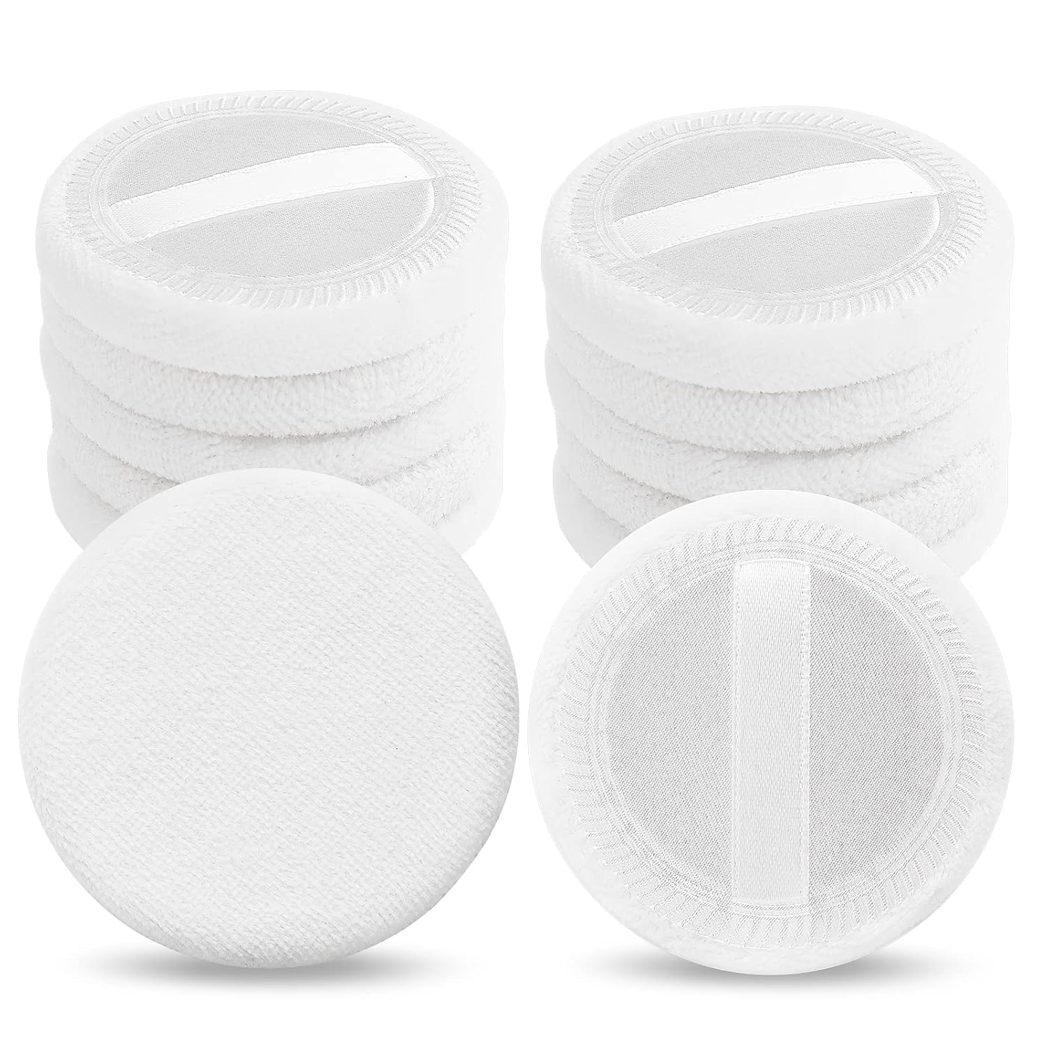 • 【White Powder Puff Round】: Our round loose powder sponge is suitable for applying foundation, loose powder and other cosmetics during makeup, making your makeup look more natural, these powder puffs are very suitable for all kinds of skin, whether you are oily skin, normal skin, dry Skin, combination skin, can use it, with ribbon design on the back, fingers can be put in, not easy to slip off when patting, can provide you with a smooth and flawless even base makeup.