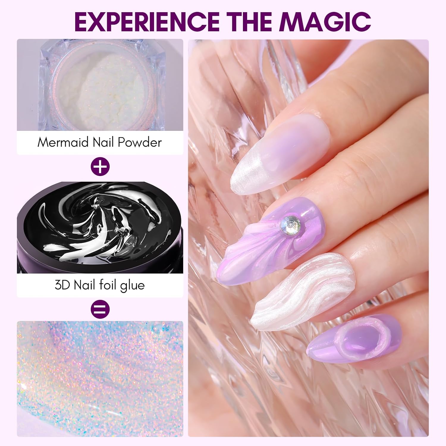 • Create 3D Effects: The foil glue gel for nail allows for a 3D effect when transferring nail foils stickers. It can design Linear / Shell / Ripple pattern etc. with nail brush and use with chrome powder for nails, making the nail design more dynamic and eye-catching.