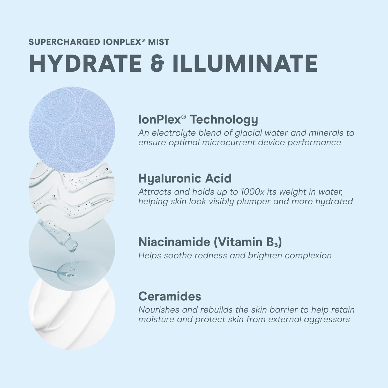 • Supercharged Hydration - This 3-in-1 facial mist deeply hydrates skin to enhance your microcurrent treatment and refresh skin throughout the day. Formulated to lock in moisture, and reduce the look of fine lines, and pores for a lasting radiant appearance.