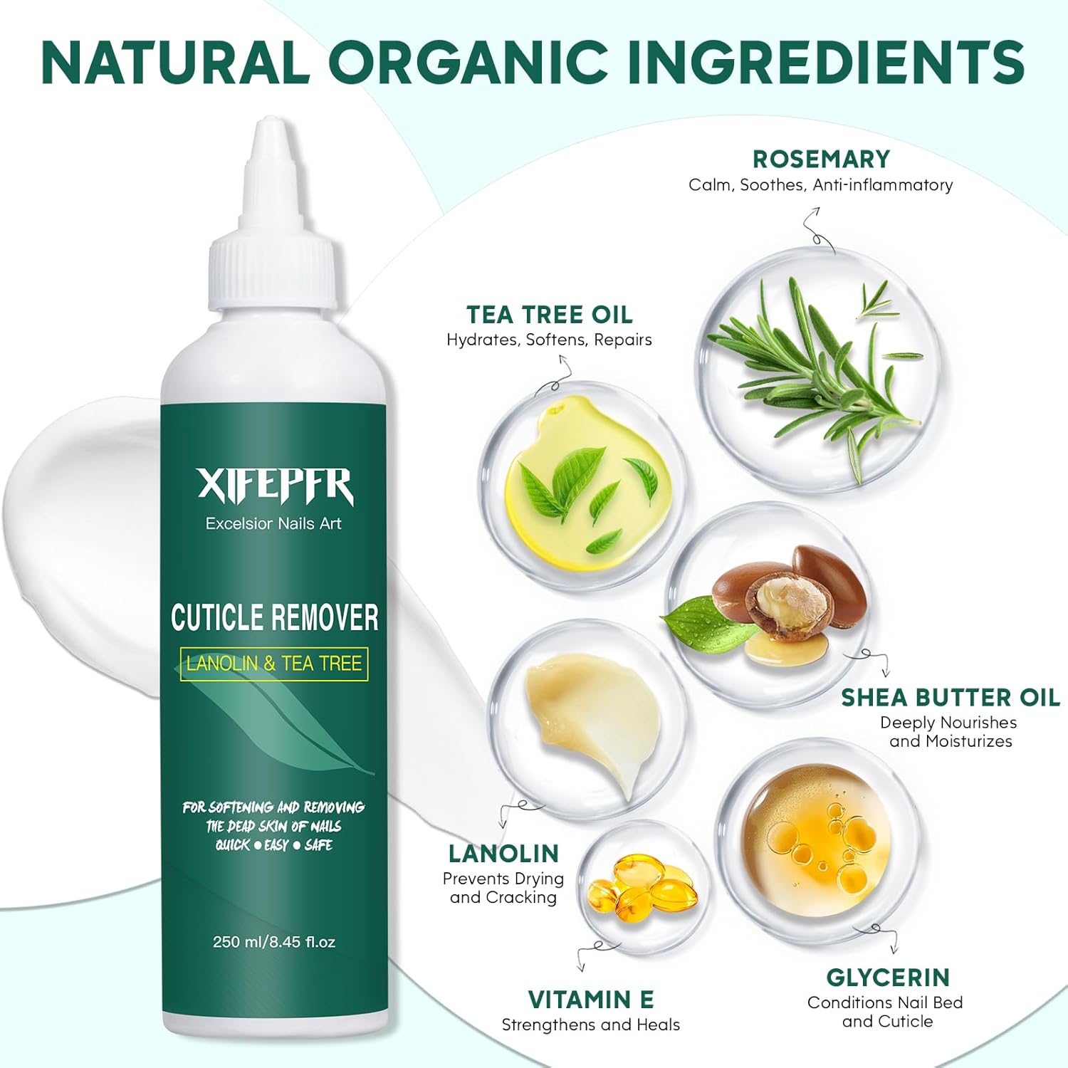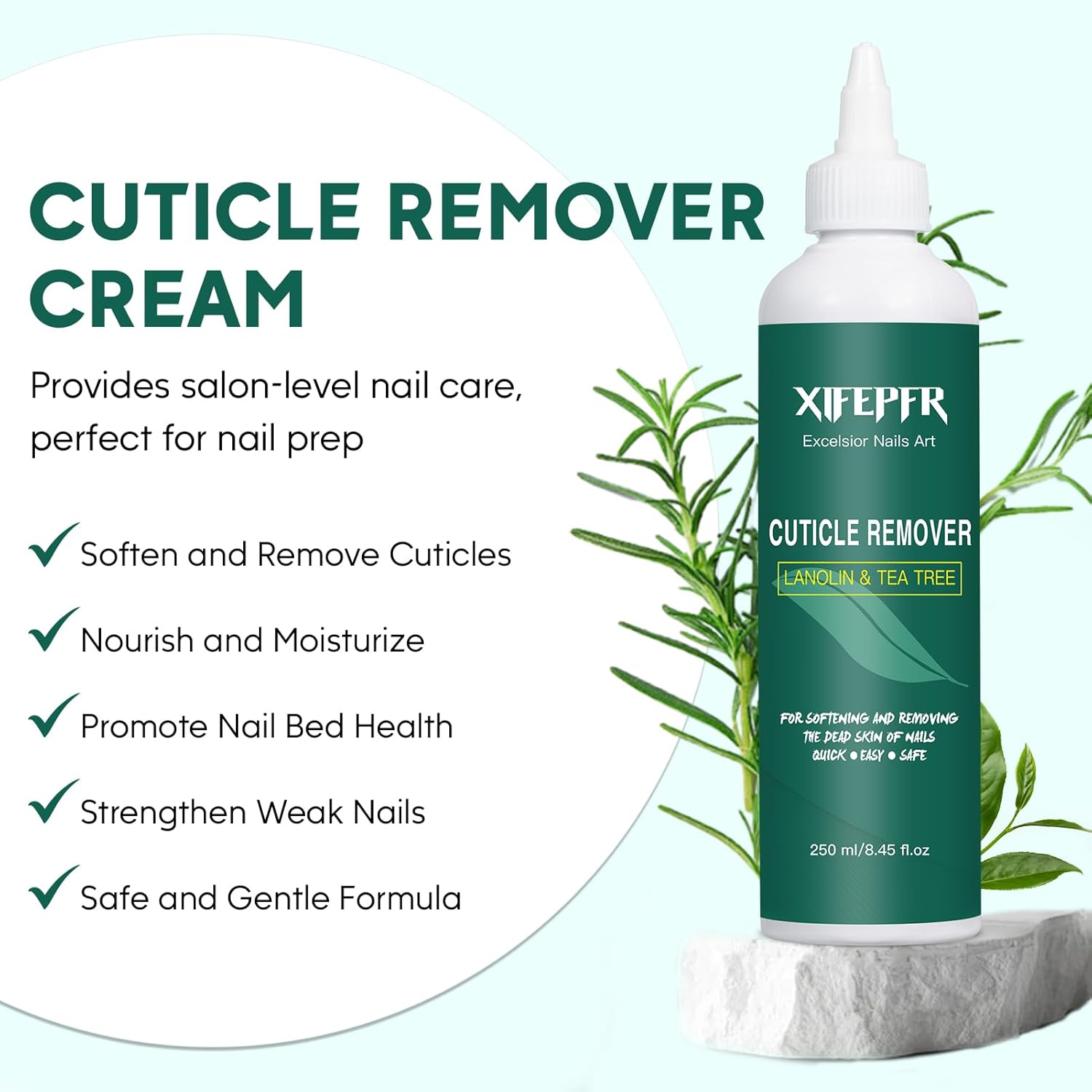 • Deeply Nourishes Cuticle: XIFEPFR 250ml large-capacity cuticle softener cream has a smooth texture, light and easy to absorb, and is not greasy, providing you with SPA-level nail cuticle care. Use cuticle remover liquid daily to moisturize, soften and repair dry, damaged and peeling cuticles.