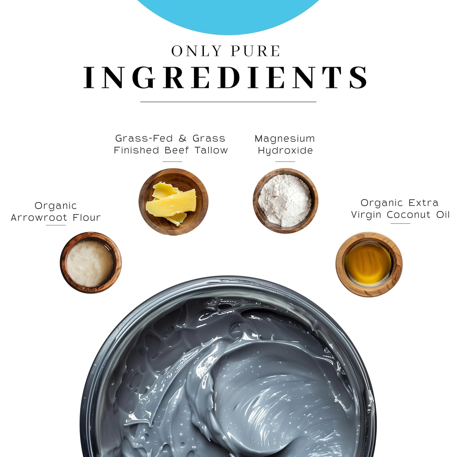 • Only Pure Ingredients: Made with coconut oil, arrowroot oil, magnesium hydroxide, and grass-fed beef tallow, this deodorant is gentle and suitable for delicate skin