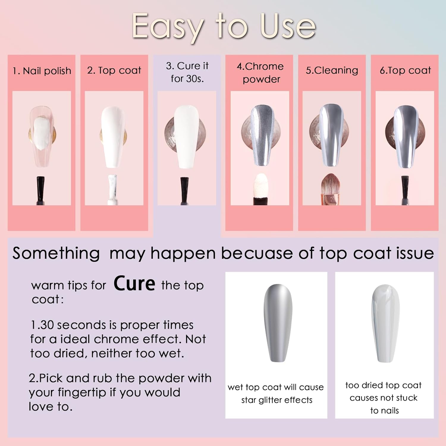 • Ultra Excellent Texture: The gold nail chrome powder is fine and smooth without particles feeling, so you can make your nails exquisite with an amazing mirror effect. And the pink chrome nail powder is non-toxic, more durable, and environmentally friendly, which does not harm your nails and skin, using it more at ease. Make mirror effects for your nails with our excellent equality chrome powder set.