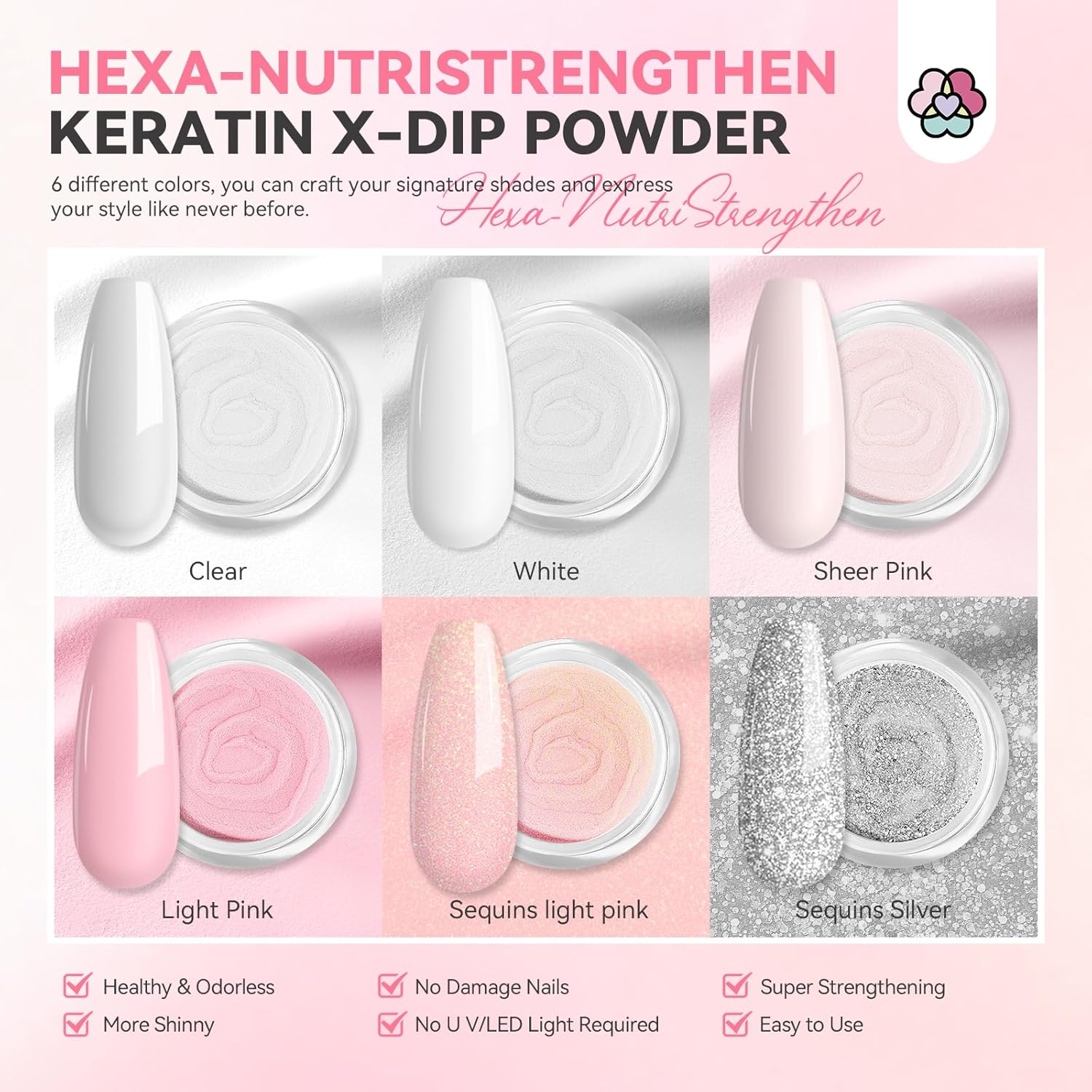 • Hexa-NutriStrengthen Dip Powder Nail Kit with Nail Drill: SSProDip X Nails Dip Powder Kit contains 6 colors of dip powder, nail drill kit, dip base, dip top, activator, nail file, nail dust brush, dip powder recycling tray and replacement brushes. With 6 popular colors, you can have a beautiful nail style with simple operation and make you shine in any occasion