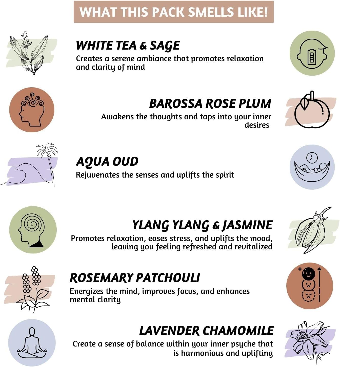 • [Fragrance Note] - These incent feature a beautiful blend of woody and musky fragrances like white tea & sage, rose plum, aqua oud, ylang ylang & jasmine, patchouli, and lavender. The calming effect of cone incense scents can promote emotional balance, uplift your mood, and nourish your spirit.