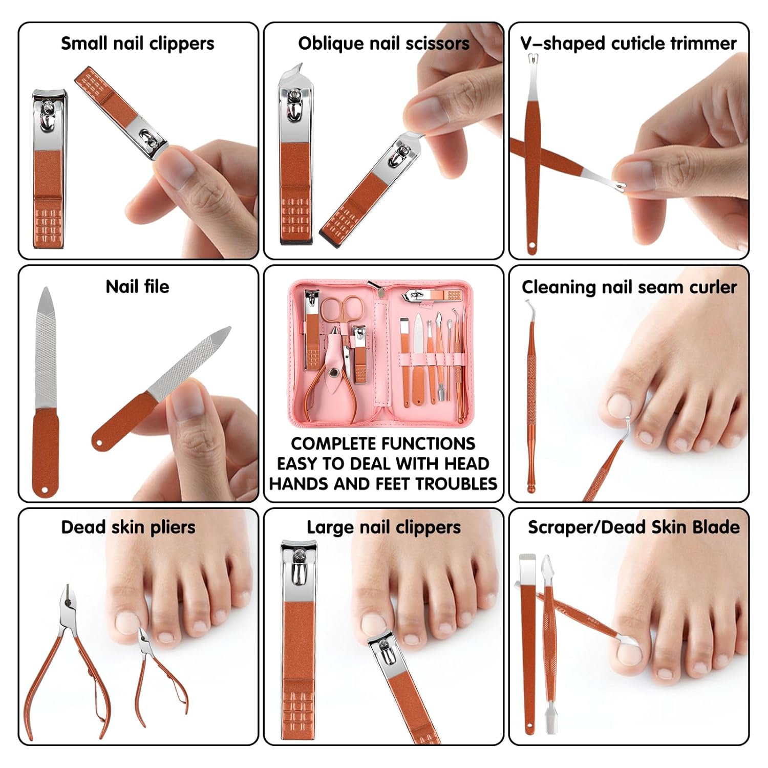 Nail Kit, Manicure Kit, Nail Care Kit for Women, Manicure Pedicure Set, Nail Clippers Toenail Clippers Kit, Professional Manicure Kit Pedicure Kit, Pink Travel Case, Set of 12.