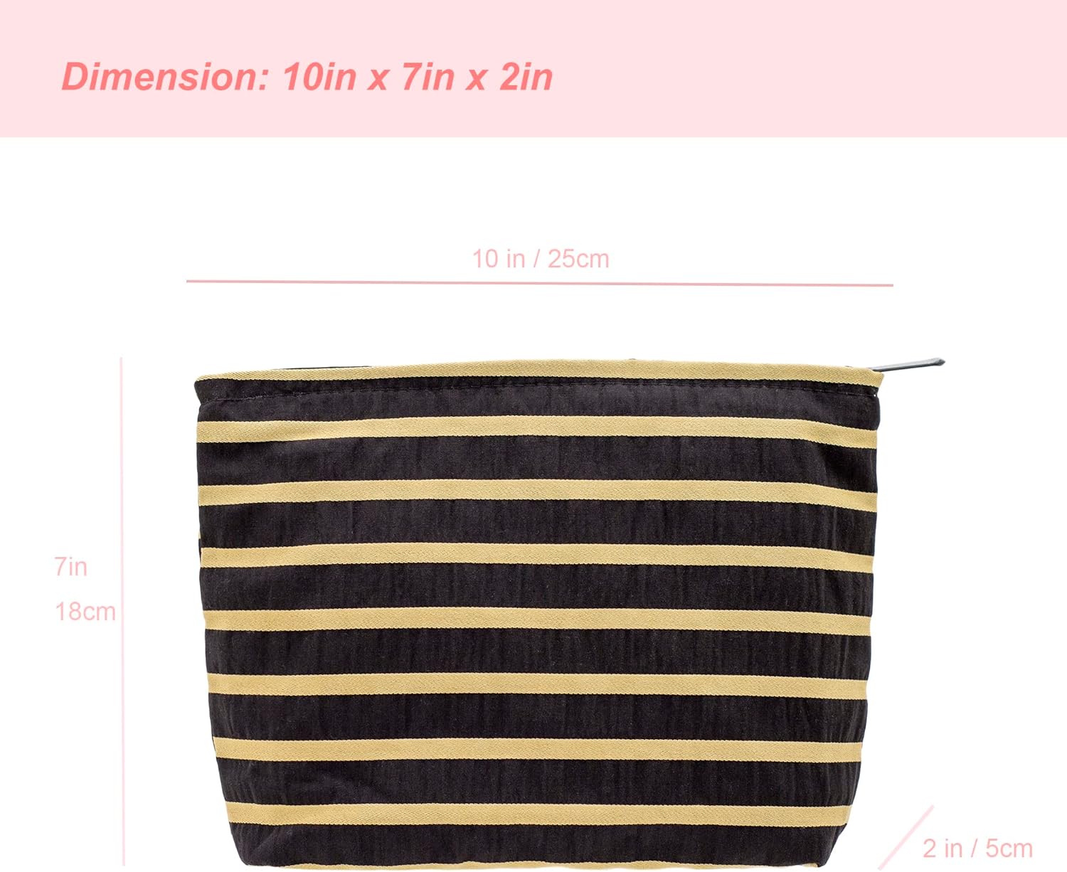 PAZIMIIK Floral Makeup Bag Large Cotton Zipper Pouch for Purse Travel Canvas Make Up Organizer for Women Cosmetic,Stripe Black