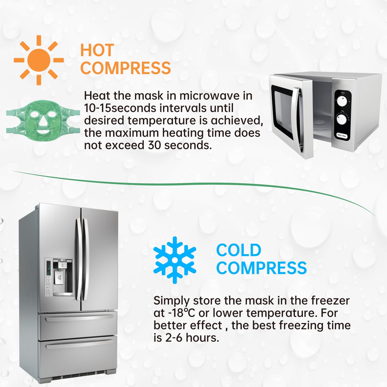 • 【CONVENIENT TO USE】simply store the mask in the freezer at -18℃ or lower temperature for at least 2 hours.Heat the mask in microwave in 10-15seconds intervals until desired temperature is achieved,the maximum heating time does not exceed 30 seconds.