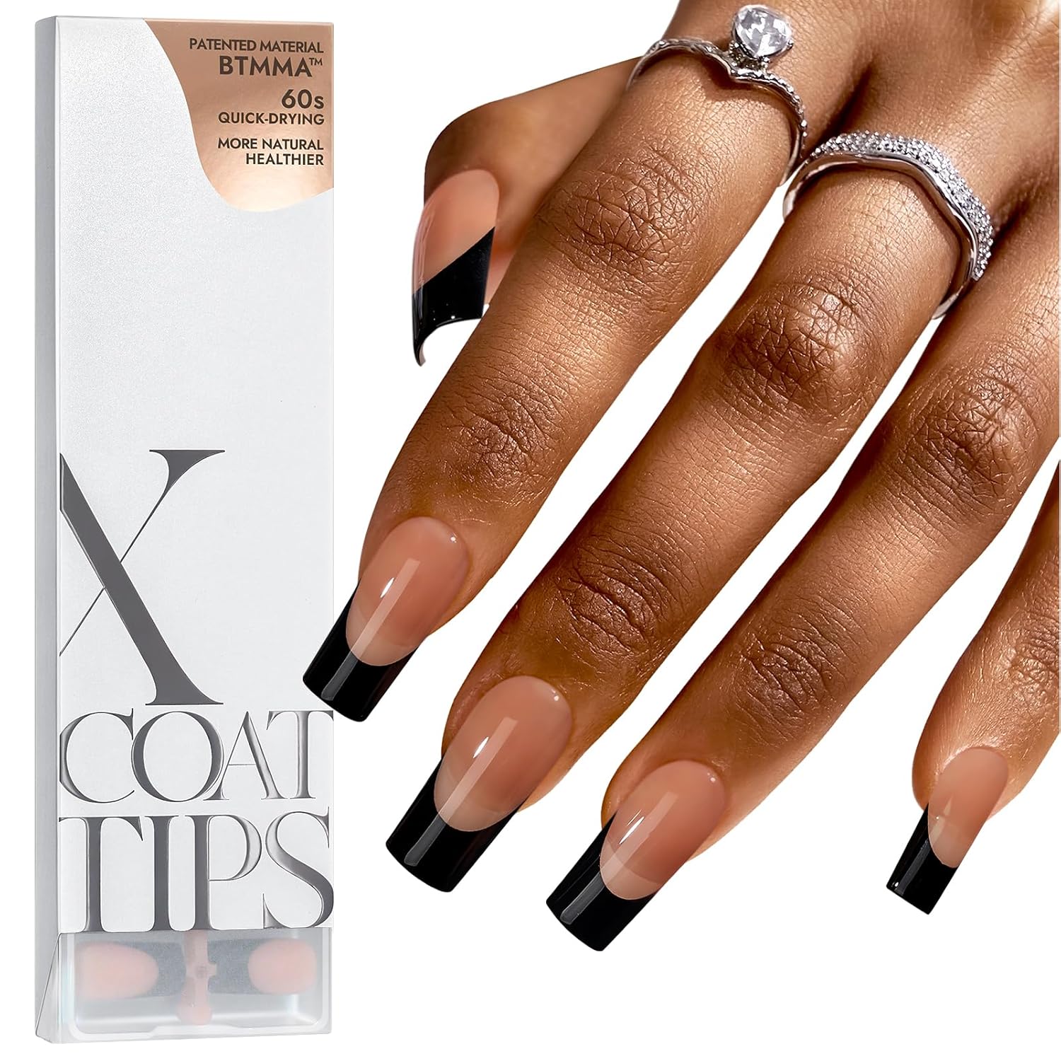 BTArtboxnails XCOATTIPS French Tip Nails - Long Press on Nails, Square Nail Tips Black, French Tip Press on Nails, Soft Gel False Nail Tips, Soak Off Acrylic Fake Nails