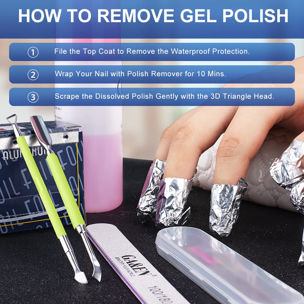 • MULTIFUNCTION PACKAGE: The Cuticle Cleaning and Removal Set consists of 2 pieces of Nail Art Tools with 4 types of functional heads, which can be together used to push back the cuticle, scrape the softened Gel Polish and remove the residue or hangnails.