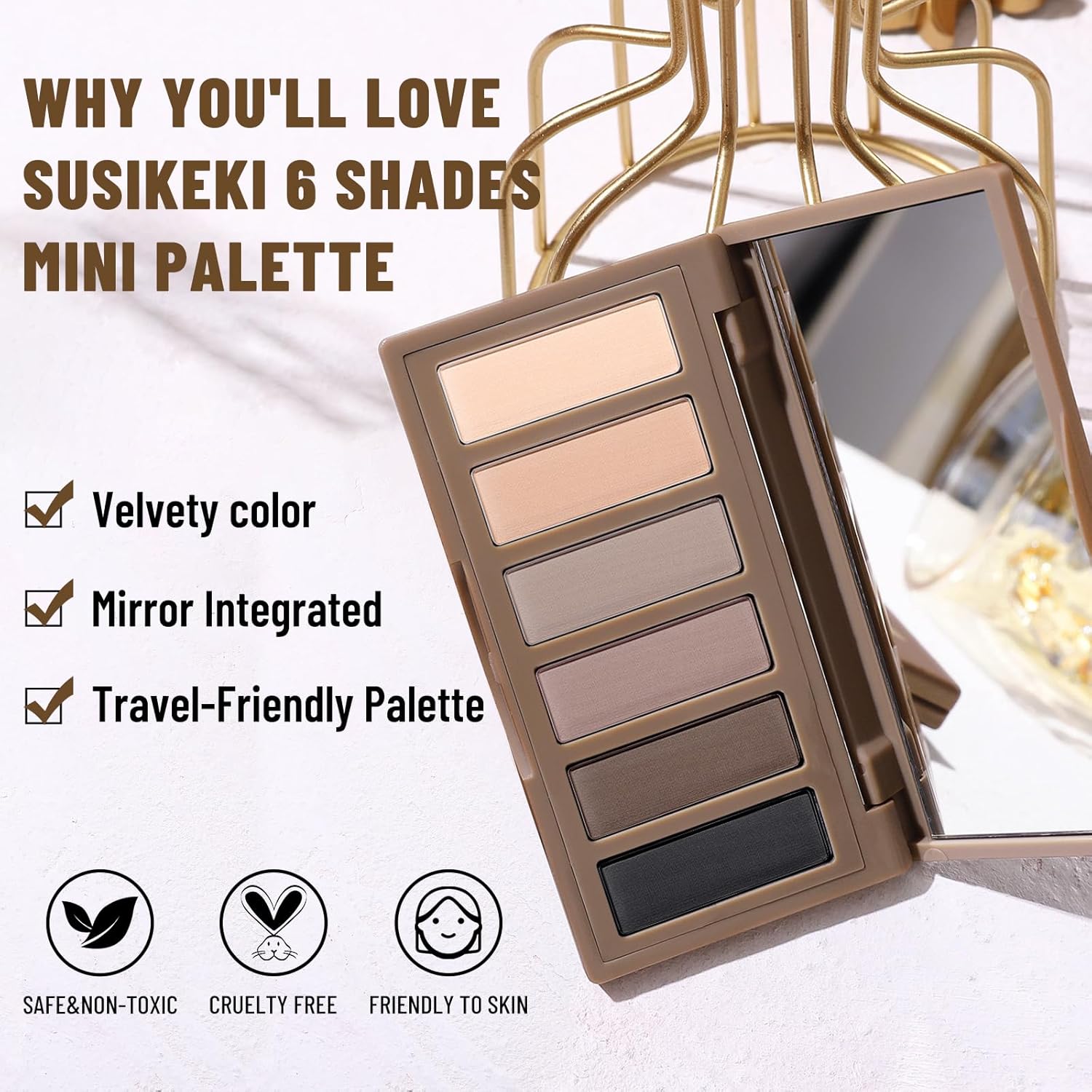 • 【Professional Neutral Tones】Elevate your eye makeup game with the SUSIKEKI min eyeshadow palette. This carefully curated pallet features six stunning shades of neutral tones, ranging from soft taupes to rich browns. Create versatile looks with ease, perfect for both makeup beginners and professionals.