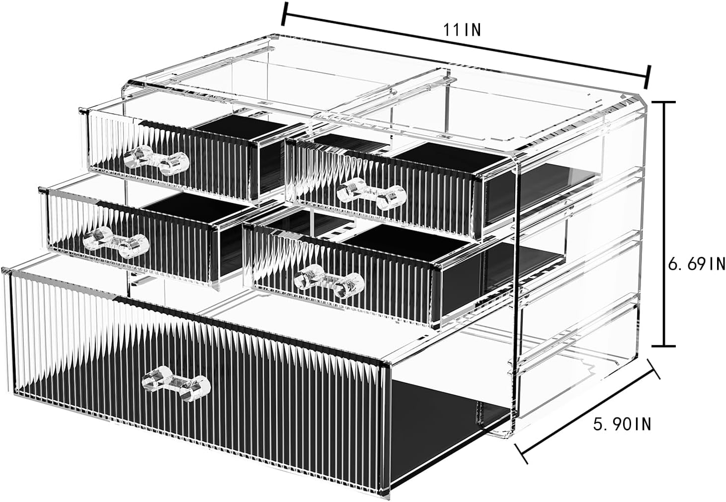ZHIAI Stackable Storage Drawers, Acrylic Bathroom Counter Organizer Clear Makeup Organizers for Vanity, Kitchen Cabinets, Bathroom, Undersink, Home Organization and Storage (5 Drawers, Pattern C)