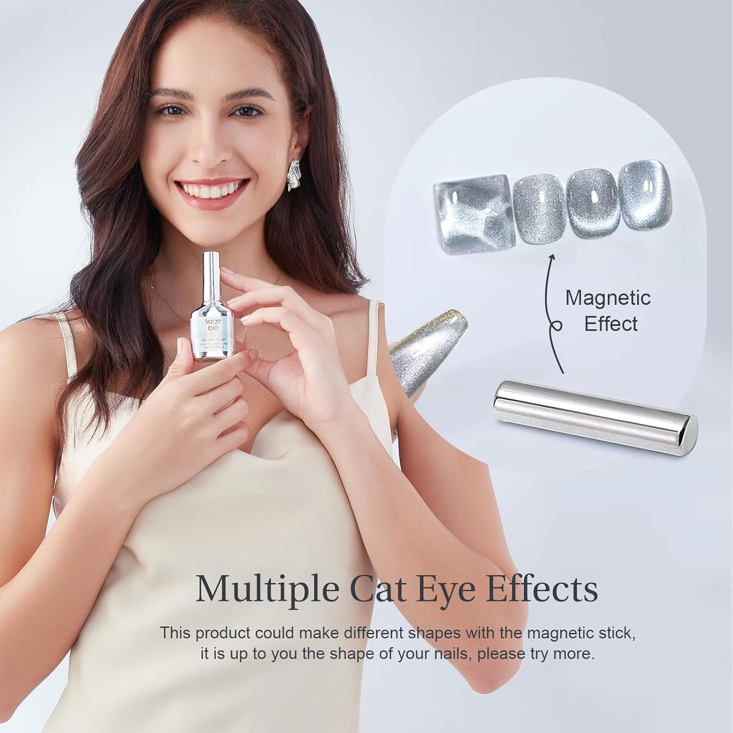• Unique Magnetic Effect: Create captivating cat eye nail art with SAGEBIO's special magnetic gel polish and included magnet stick.
