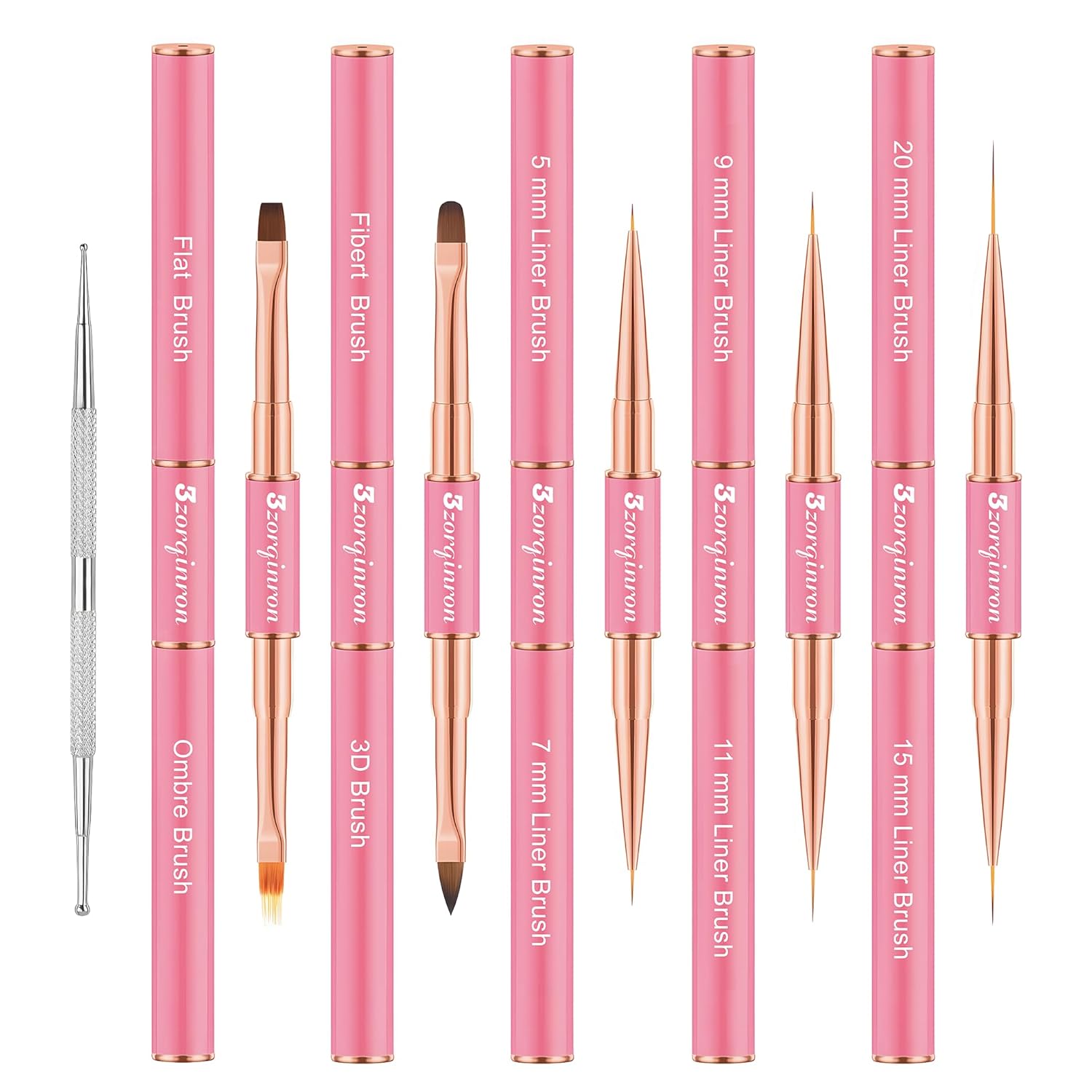Nail Art Bushes Set, Professional 5Pcs Double-Ended Nail Brush Kit for Details, Long Lines, Ombre & 3D Design-Perfect for DIY Manicures & Salons (Pink)