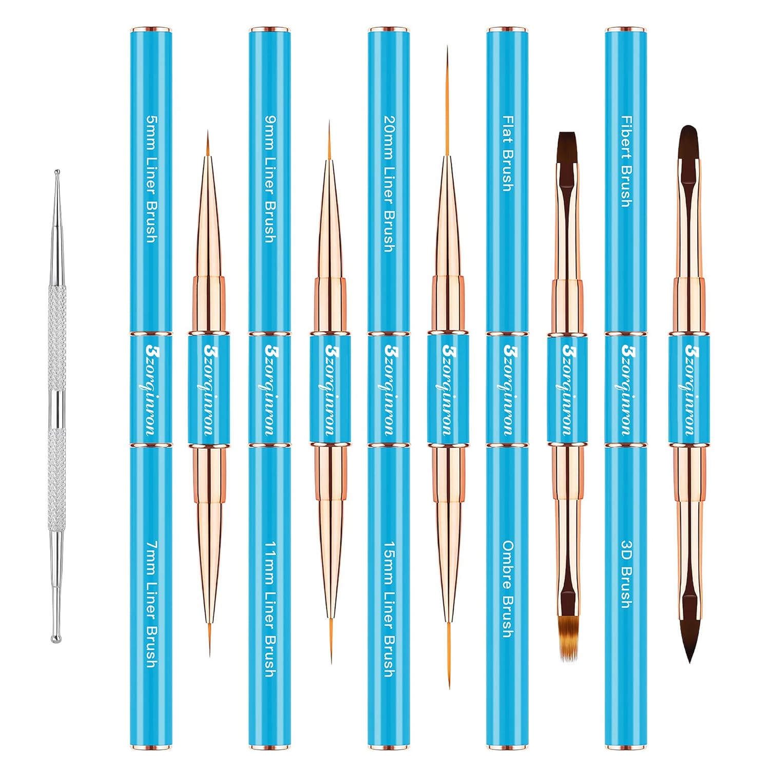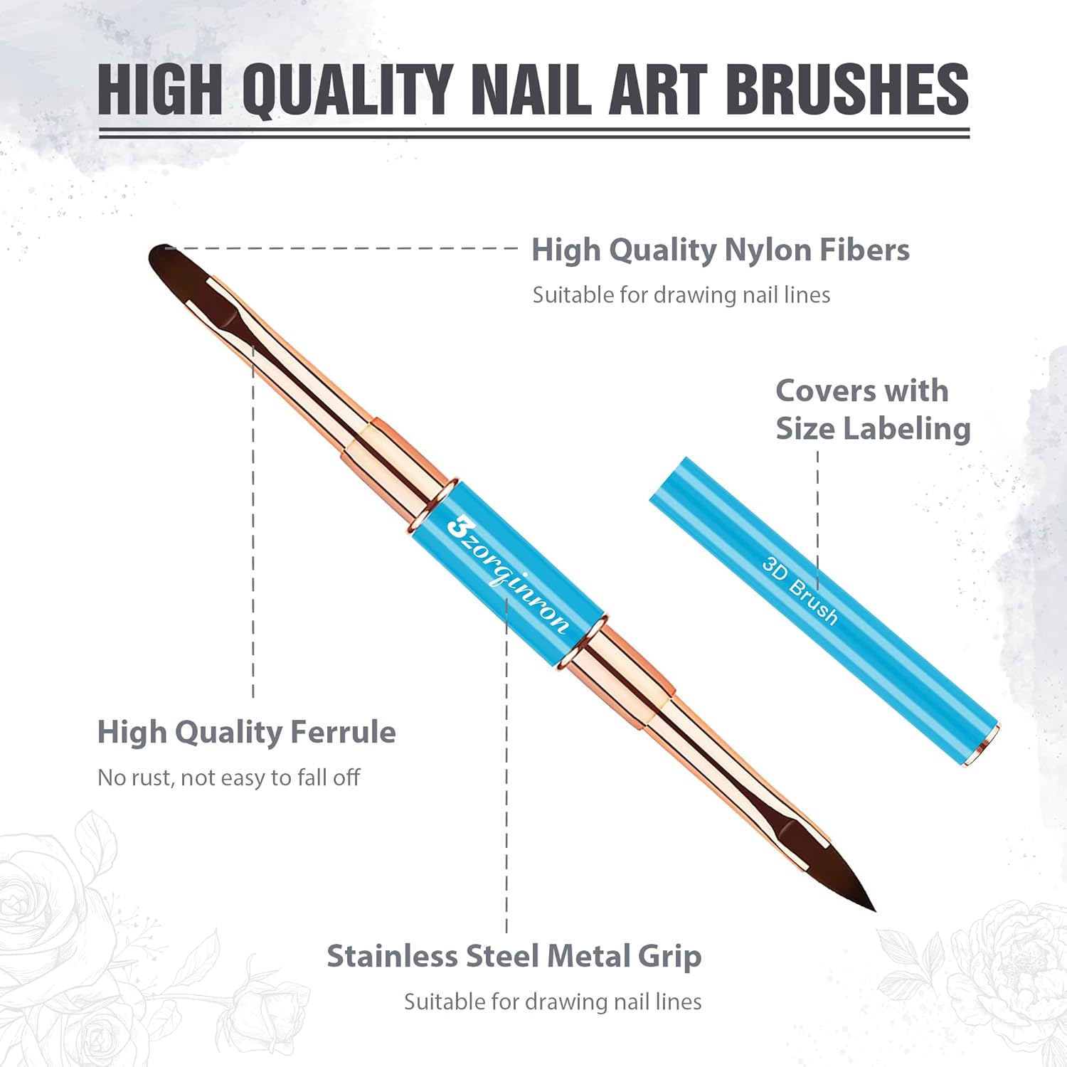 • Versatile Design – Our brushes feature double-heads with 10 different brush heads to choose from, including liner and detail brushes, flat and ombre brushes, a Filbert brush, and a 3D brush, giving you the freedom to create any design you like. Whether you're creating delicate floral patterns or bold abstract designs, these brushes will deliver outstanding results.