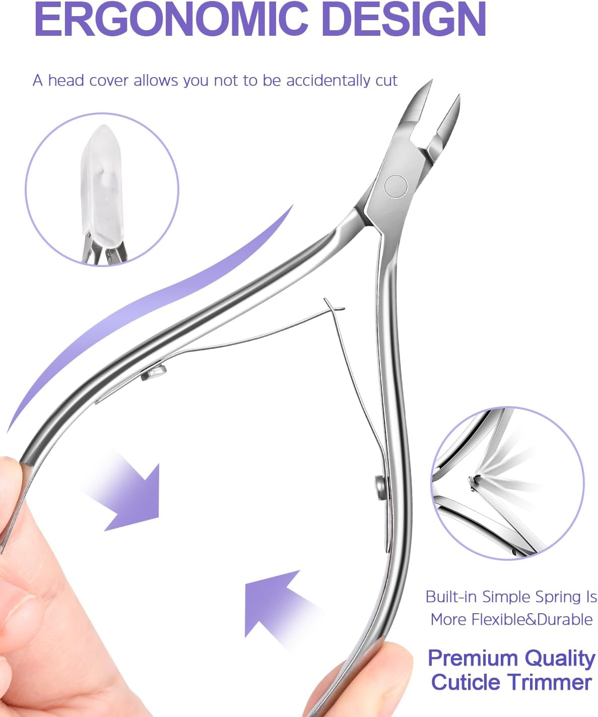 • Cuticle Trimmer Set: the stainless steel cuticle clippers for nails are sharper and more efficient for a long time, making sure that the cuticles easily removed. Other 4 pcs manicure tools help you reach nail edge more easily to remove the stubborn debris effortlessly