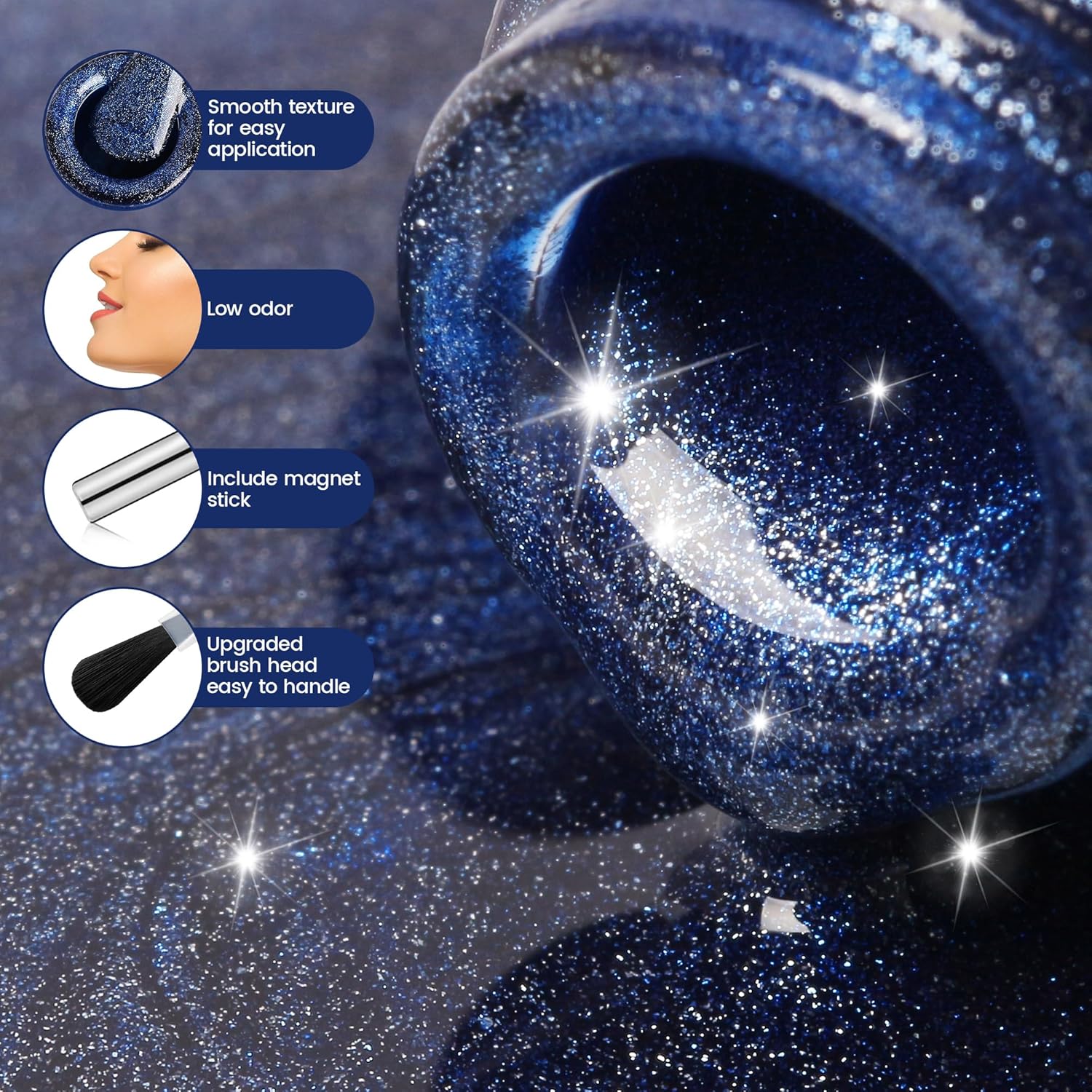 • Special Feature : Glittery, Long Wearing, Magnetic