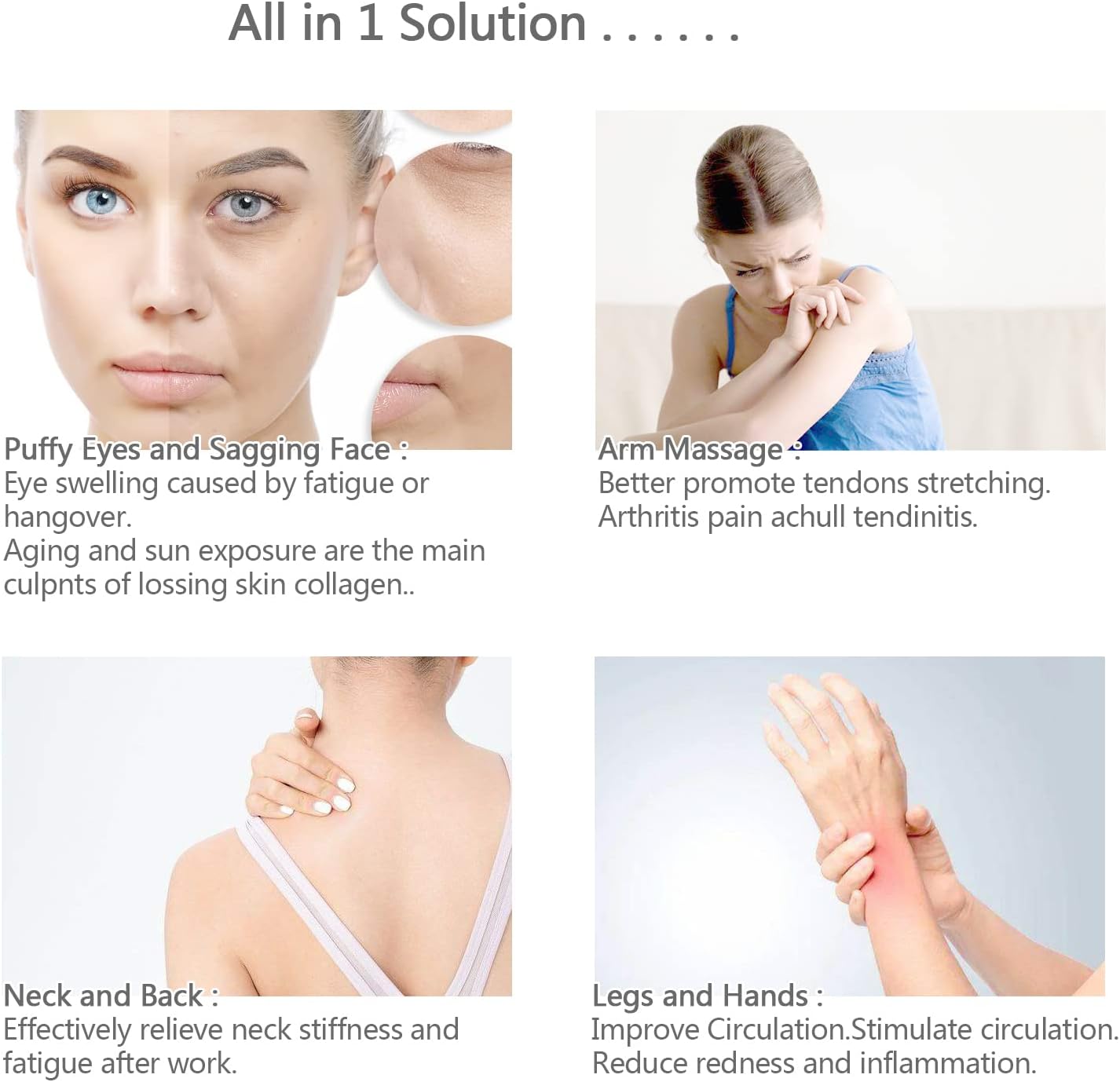 • Product Functions:Tighten your Pores and Calm your skin redness and inflammation - Effectively accelerate microcirculation on treatment area to clam your skin, reduce redness, fight puffy, fatigue, dry eyes, dark circles, early fine lines.Helps firm and tighten skin for radiance. Say Goodbye to fatigue - Massage on your eye and temple to relax and relieve fatigue. Detox massage could help to release muscle tensions to prevent early fine lines.
