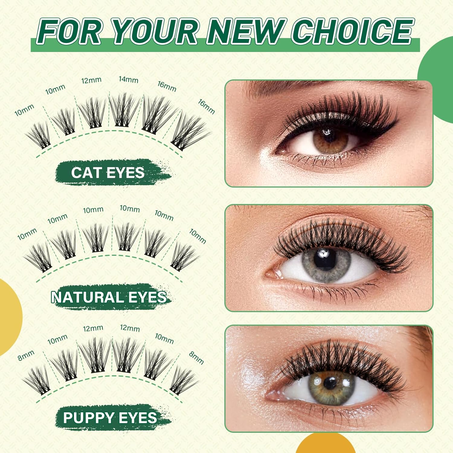 • 【144pcs High Quality Cluster Lashes】The simulated eyelash material is more realistic and will not feel plastic, comfortable and non-irritating on the eyes, allowing you to easily maintain a perfect makeup all day long.