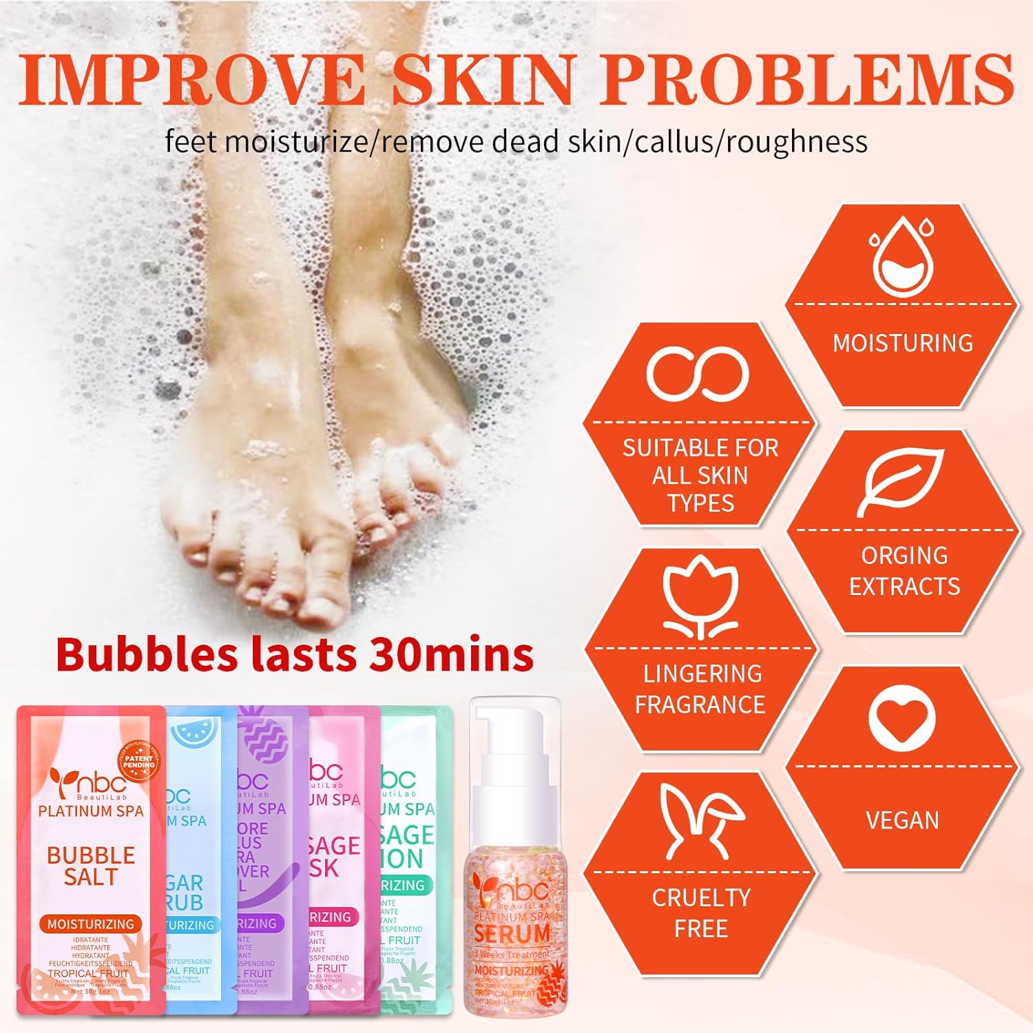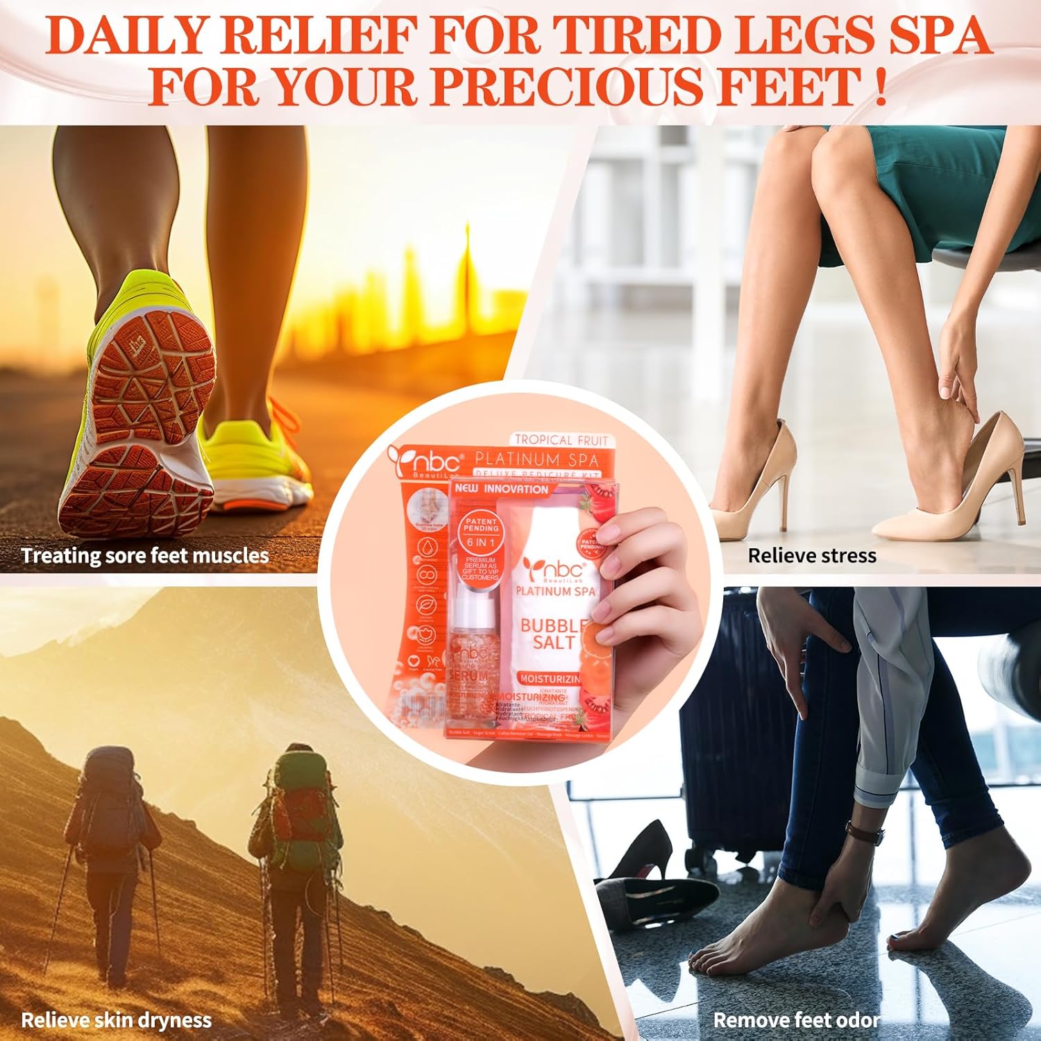 • Product Benefits : Relieves tired feet, effectively removes calluses, soothes itchy feet, and restores smooth skin with natural and harmless treatments, offering a relaxing foot bath experience. Relieves tired feet, effectively removes calluses, soothes itchy feet, and restores smooth skin with natural and harmless tre… See more