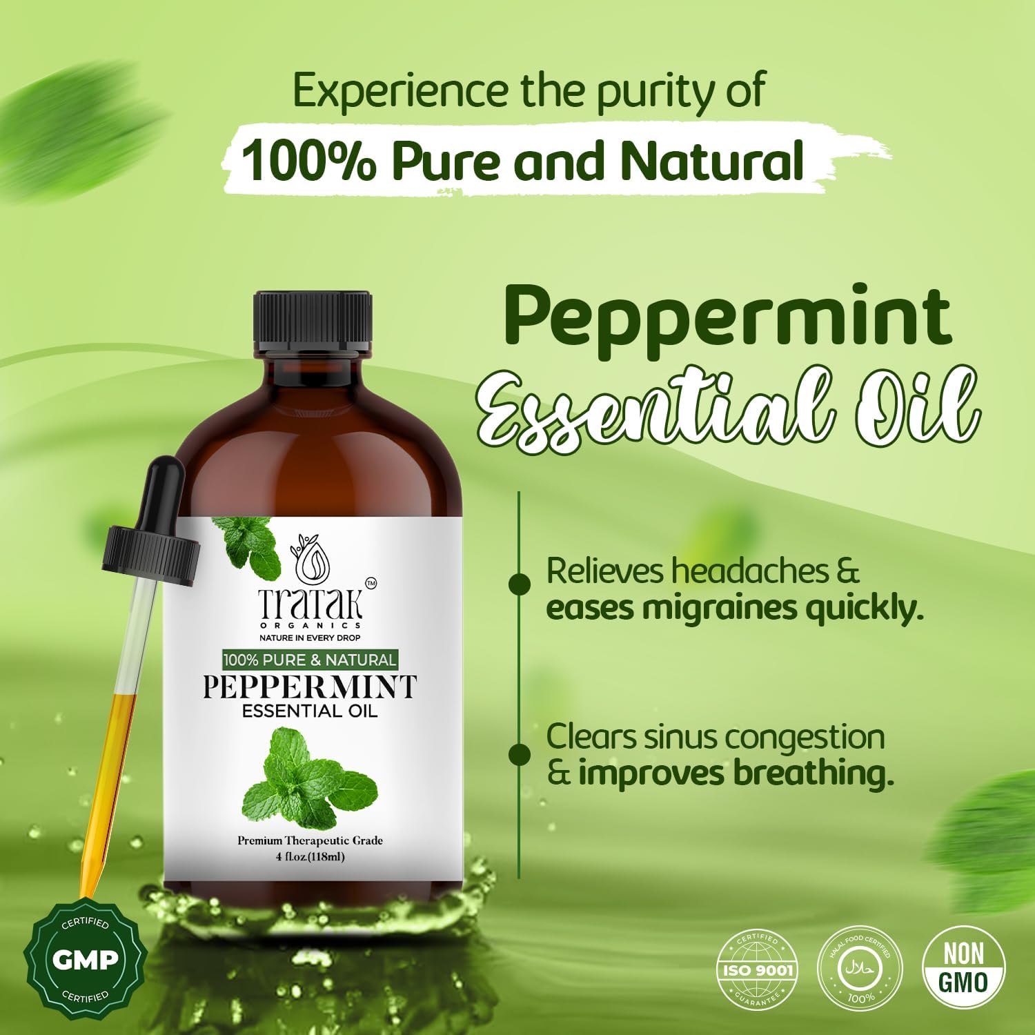 • PACKAGE INCLUDES: Pack of 1 Tratak Peppermint Piperita Essential Oil with dropper, Net Weight: 4 Fl Oz