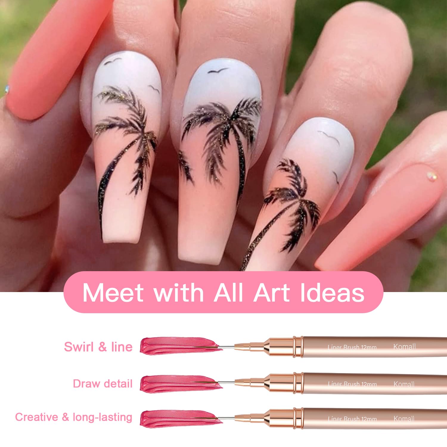 • USAGE: Our nail art liner brushes perfect for gel nail polish, acrylic paint, drawing lines & fine drawing & painting flowers and pattern design on nail tips and etc. Suitable for home use and professional nail salon.
