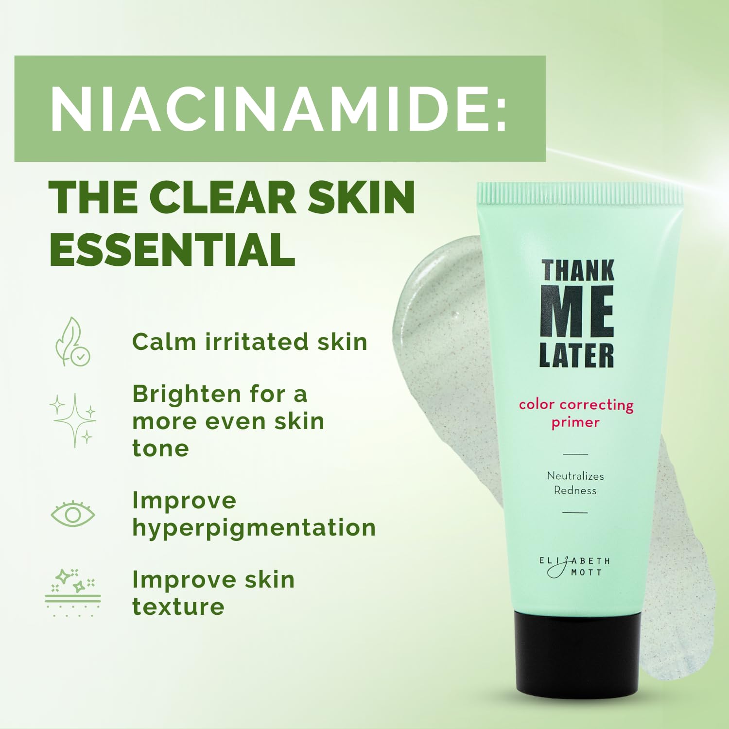 Elizabeth Mott Thank Me Later Color Correcting Face Primer - Niacinamide and Cica Soothes and Neutralizes Uneven Skin Tone and Facial Redness - Grips Makeup for Long-Lasting Wear - Cruelty-Free, 30g