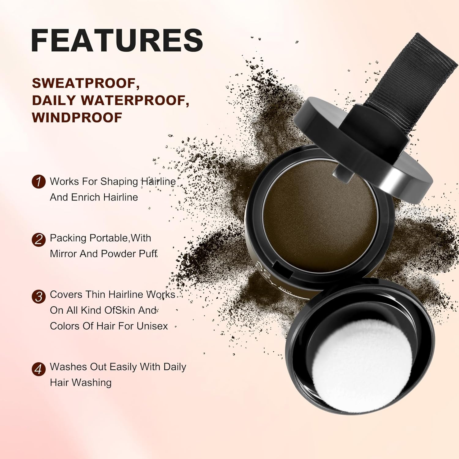 • 1.Instant Coverage Hair Root Touch Up -The Acosexy Hairline Powder puff can accurately cover the roots of hair. Locks on Until You Shampoo: Hair loss? Skip the embarrassing all-day touch-ups .The color is firm. Make the hair fluffy. Will Makes hair color natural and vibrant. Great for all hair types and texture!