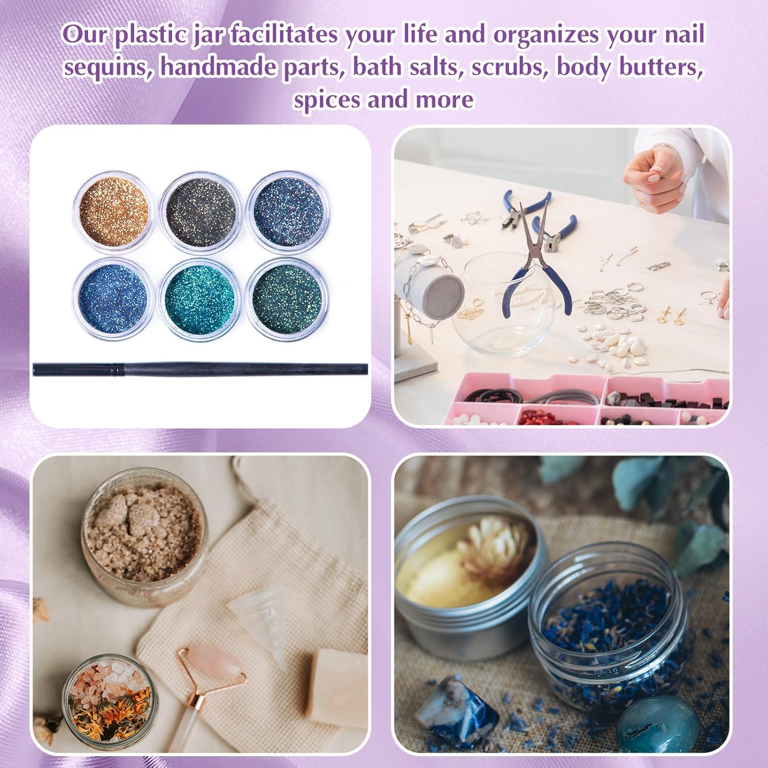 • Multifunctional Containers: you can use these plastic jar containers with lids to store your personal beauty products for travel, ideal to dispense; You can also use it to store homemade sugar scrub cream, body lotions, bath butter soap gifts, body butters and hair moisturizers, small and easily lost jewelry, small crafts like beads, seasonings, acrylic paints, flower seeds, rhinestones etc., which will keep your things organized and make your life more convenient