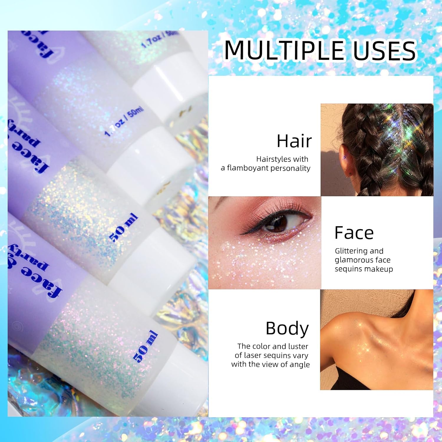 • 【Ideal Choice】Give the body glitter gel to someone close to you who loves glittery makeup! Holographic colored glitter is perfect for creating bold and creative makeup looks.