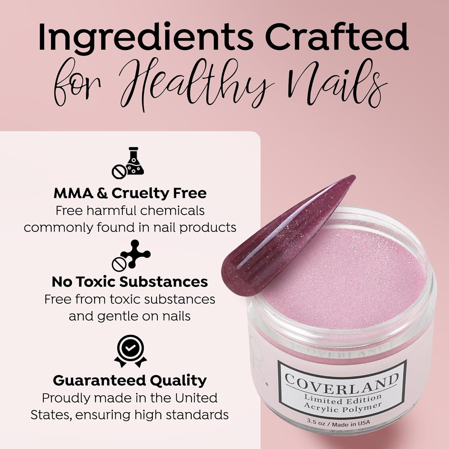 • βœ”οΈππ‘πŽπ…π„π’π’πˆπŽππ€π‹ 𝐆𝐑𝐀𝐃𝐄: The flexibility and adhesion properties of Coverland colored acrylic nail powder make it easy to shape nails with precision, and offers nice control for professionals who prefer to work with a polymerization rate of moderate to fast.