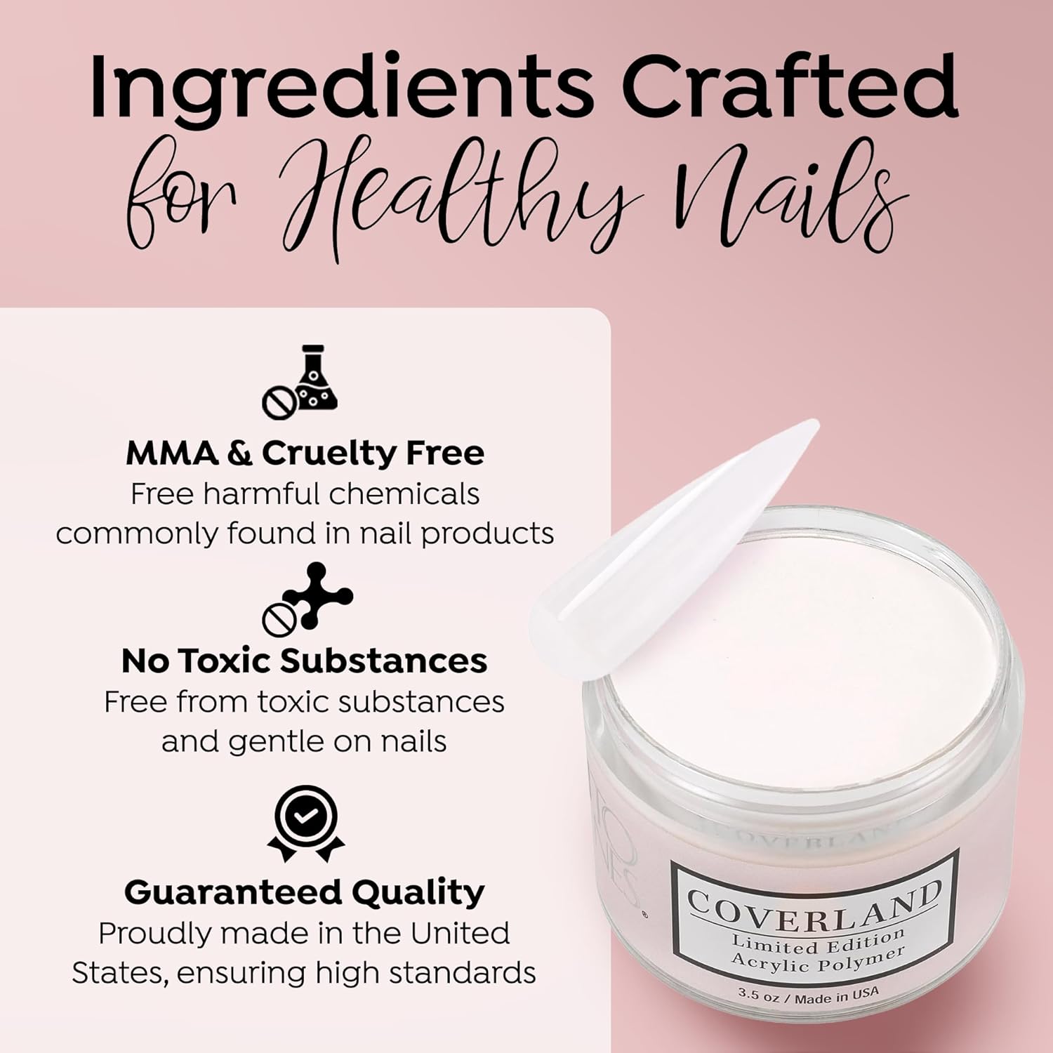 • CAMOUFLAGE IMPERFECTIONS: Coverland Polymers cover the nail bed with highly saturated skin tones and colors, helping to improve aesthetic appearance and hide imperfections. This specially formulated solution ensures a smooth, even application, allowing you to create flawless nail art with ease