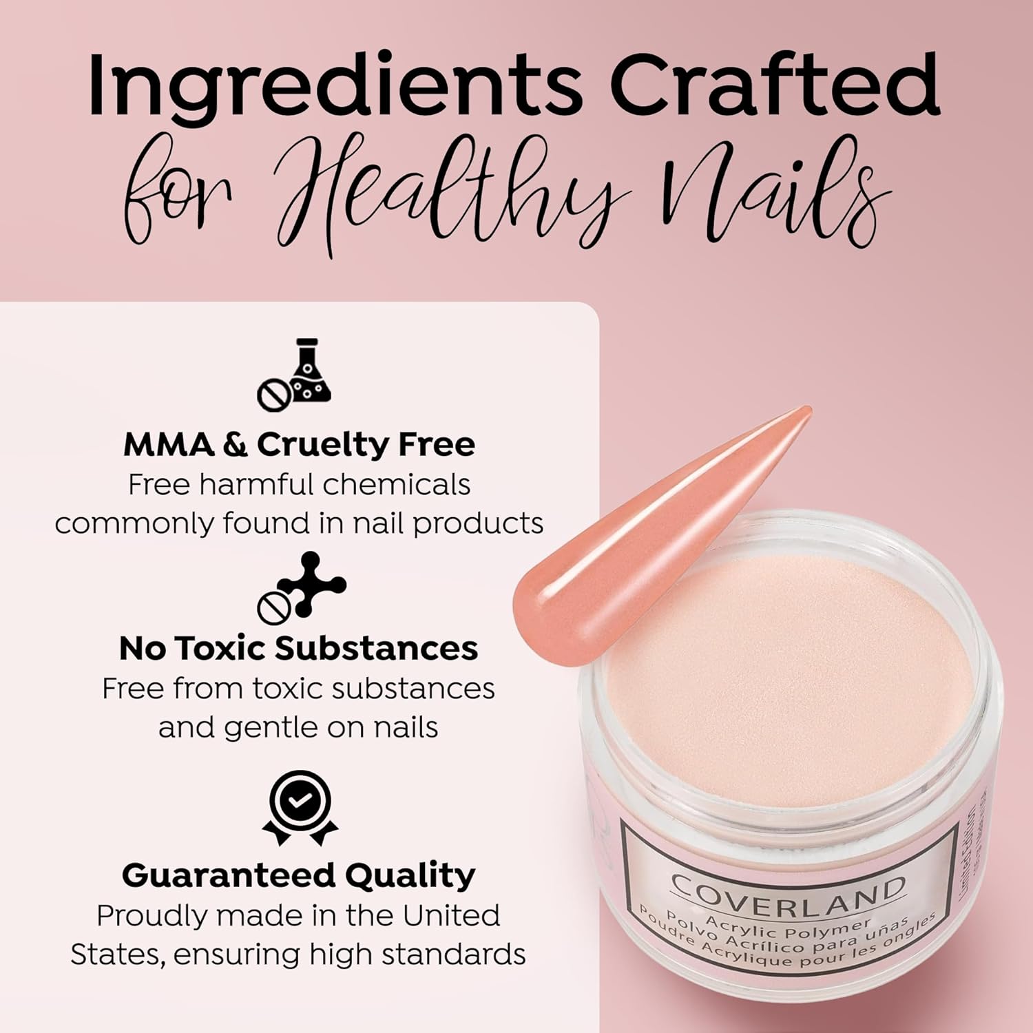 • βœ”οΈππ‘πŽπ…π„π’π’πˆπŽππ€π‹ 𝐆𝐑𝐀𝐃𝐄: The flexibility and adhesion properties of Coverland colored acrylic nail powder make it easy to shape nails with precision, and offers nice control for professionals who prefer to work with a polymerization rate of moderate to fast.