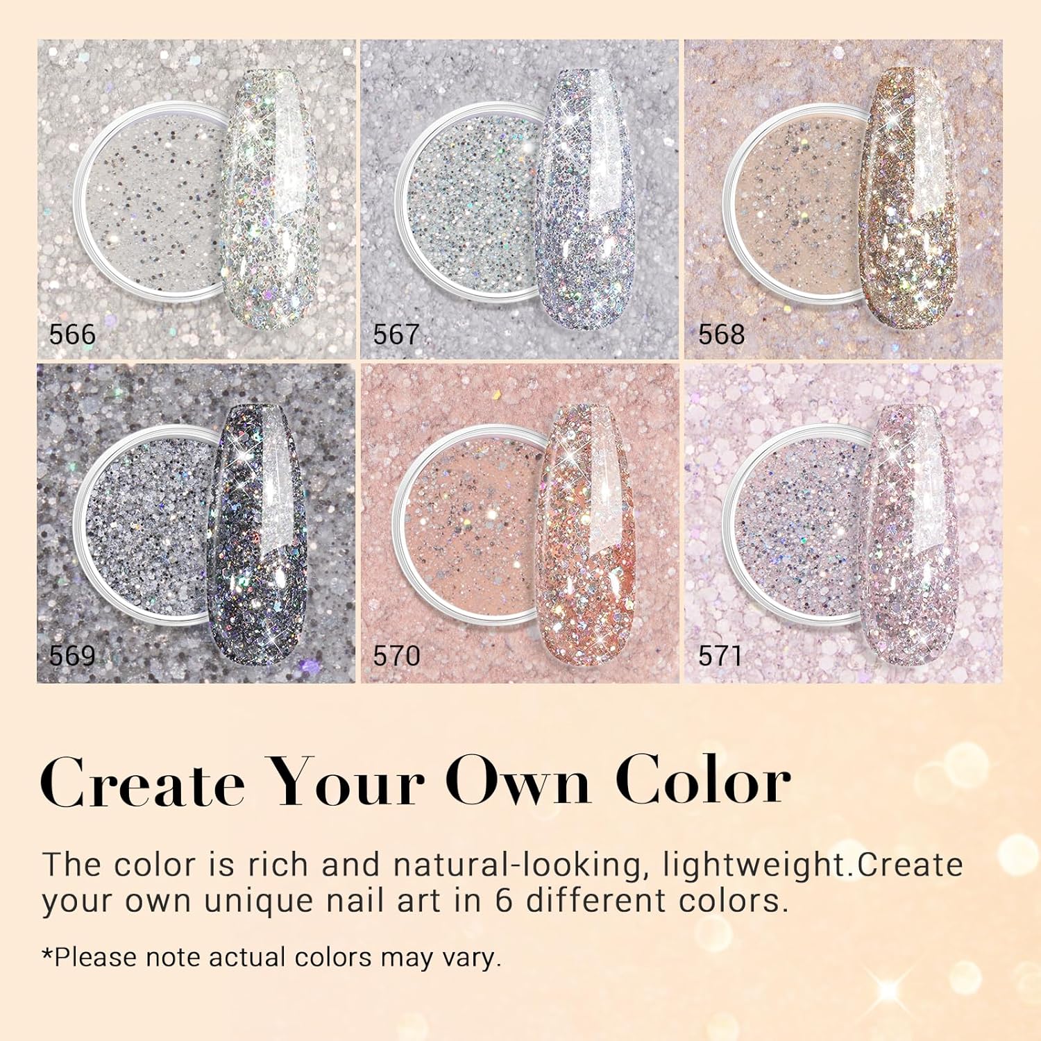 • Dazzling Dip Powder Set: With this premium dip powder set covering 6 different shiny colors(sparkle champagne, silver, pink, black, golden yellow, 10 g/box), your nails will look brilliant shiny finish, lightweight, and more attractive. No matter whether you prefer a mature, elegant, or retro style, the set will meet your needs on all occasions(daily routine life, parties, travel, weddings, etc) all year round