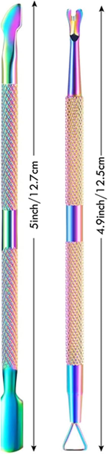 2PCS Cuticle Pusher and Cutter Remover, Xunxmas Salon Nail Scraper for Gel Polish, Stainless Steel Manicure and Pedicure Cleaner Tool for Fingernail and Toenail (Colorful)