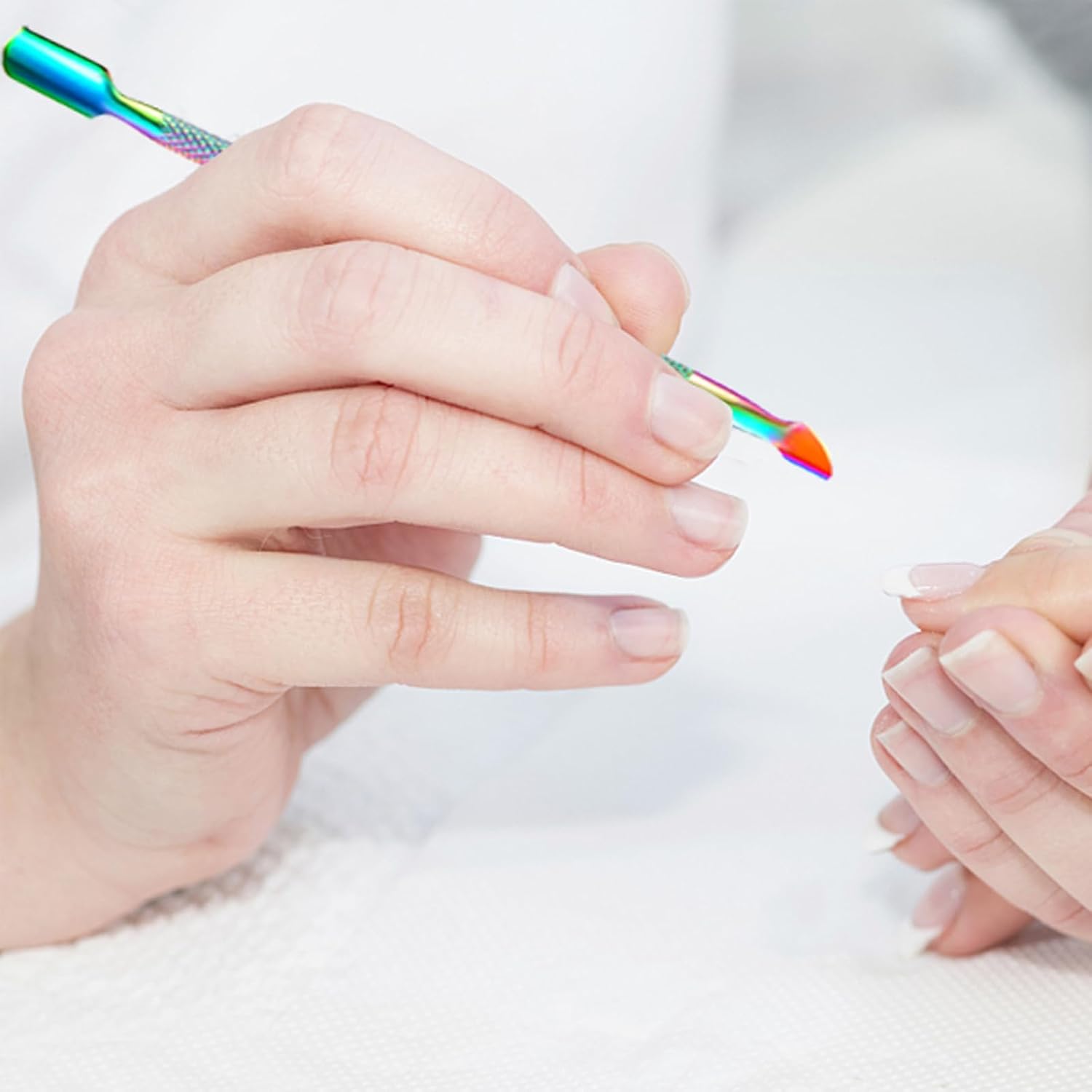 • 4 in 1 Manicure and Pedicure Tool Set -- Including cuticle pusher, cutter flat head, cuticle pusher cutter sharp head, dead skin fork and triangle nail polish scraper. Use the flat head to gently push back the cuticles on your nails. Use the triangle head to peel or remove gel nail polish; Use the cuticle pusher cutter sharp head push down the cuticles at the corners of your nails. They are great beauty tools for manicure and pedicure.