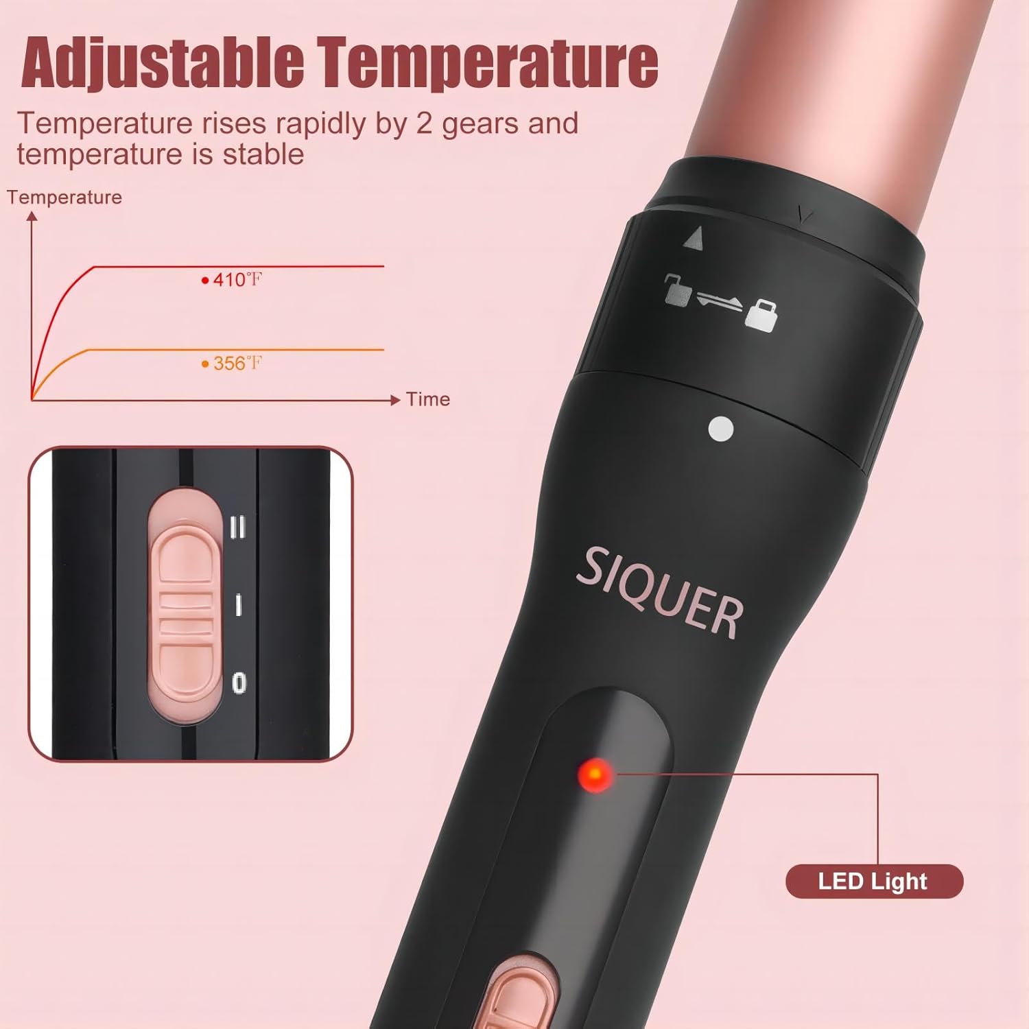 • Heats Up Fast - The hair curling wand designed at 2 temperatures -can reach 410° F within (3 mins), ranges from 356° F to 410° F. Lower temperature for fine and soft hair; Higher temperature for thick and coarse hair.