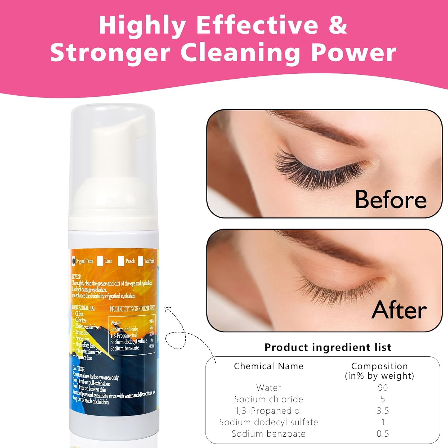 • Product Benefits : Quickly and effectively cleans eyelashes, safe for grafted eyelashes, and removes dirt and makeup residue for fresher, longer-lasting lashes Quickly and effectively cleans eyelashes, safe for grafted eyelashes, and removes dirt and makeup residue for fresher, longer-lasting lashes