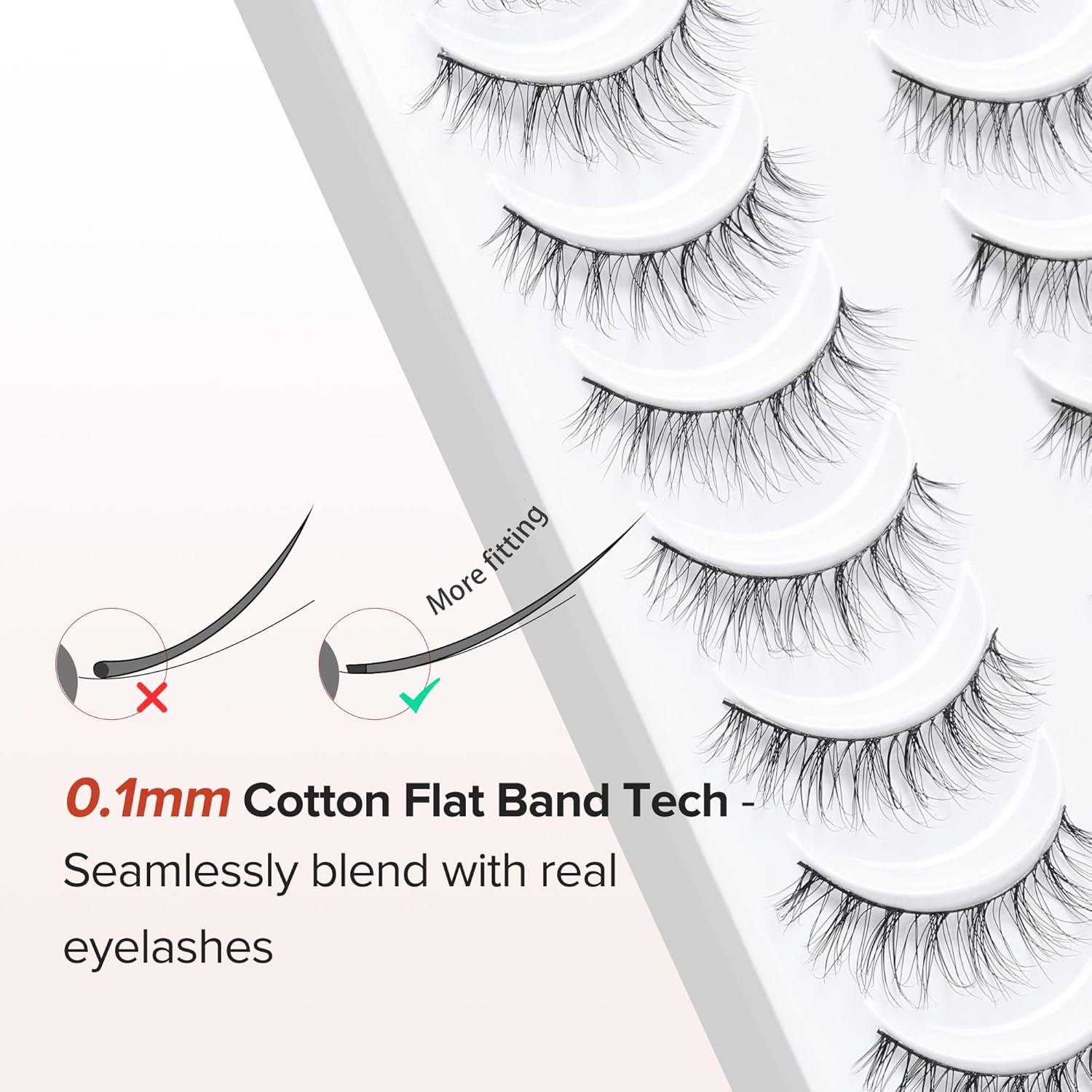 • THIN BAND FALSE EYELASHES: The wispy eyelashes use 0.1mm thin cotton flat band tech, seamlessly blend to your real eye lashes for a natural make up look, suit for DAY-TO-DAY use