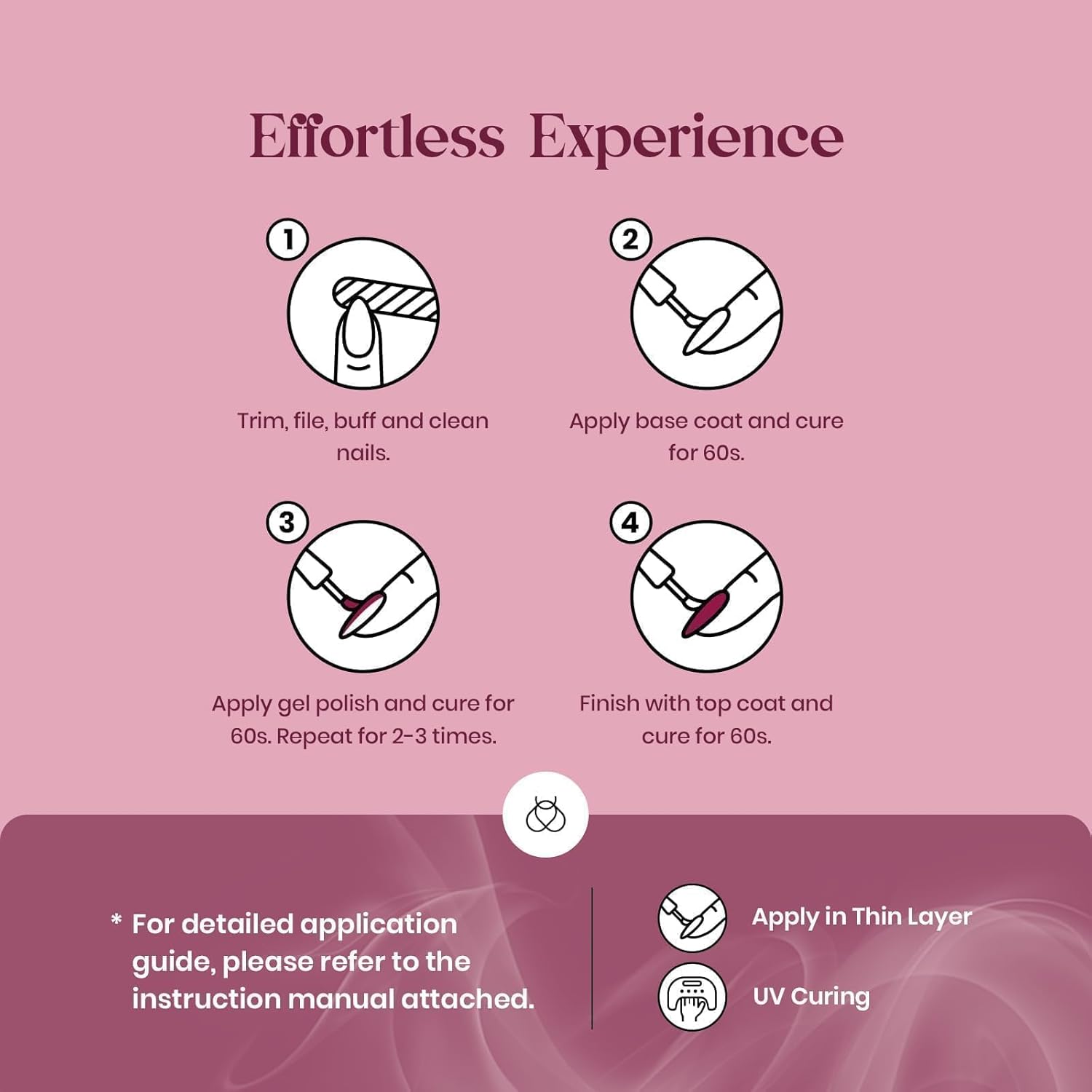 • Durability and Easy Application:Beetles purple gel nail polish kit with highly pigmented and tenacious gel material provides a brilliant shine finish, smooth appearance, and flawless coverage. Soak-off gel nail polish requires base and top coats and cures in just 60-120 seconds under UV nail lamp, which can last for more than 28 days. Use Beetles UV Nail Lamp, Get Better Effect