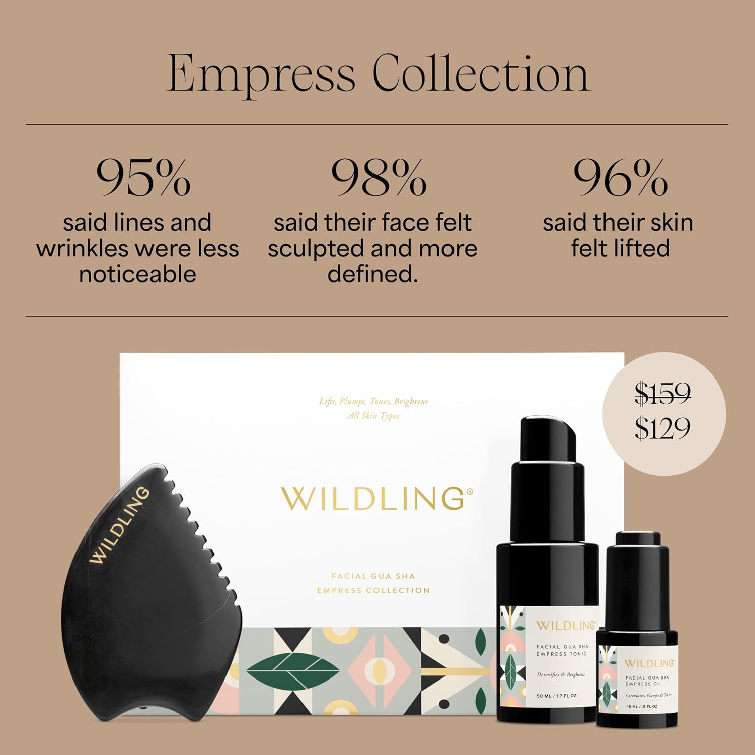 WILDLING Empress Facial Gua Sha Set I Facial Massage Tool + Facial Toner + Facial Oil to Lift, Plump, Tone + Sculpt I Patented Design 100% Authentic Bian Stone