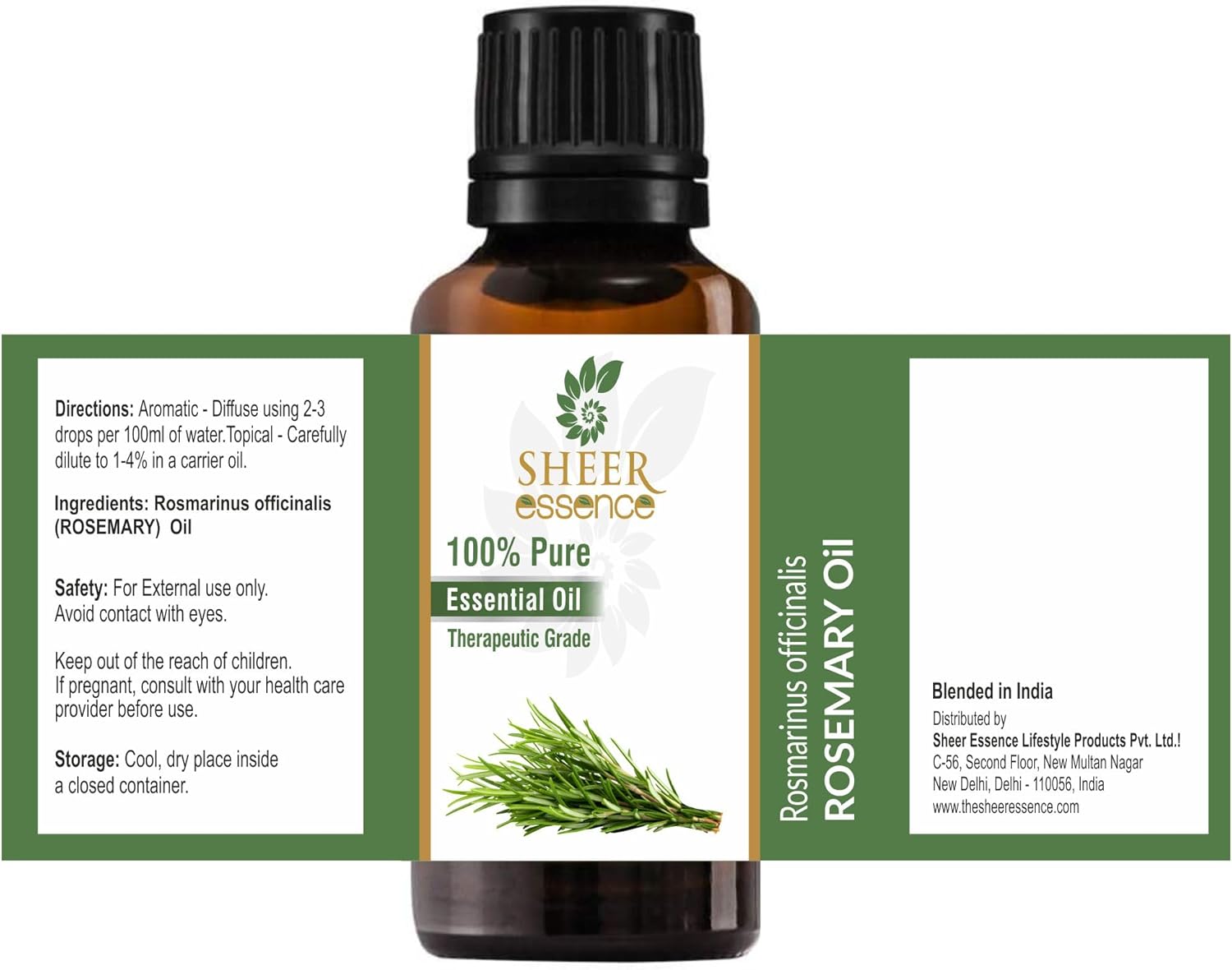 • ROSE MARY OIL: This sheer essence Rose Mary Essential Oil is undiluted and uncut therapeutic grade oil which is derived from the needle-like leaves of the rosmarinus officinalis plant through steam distillation. It has an invigorating scent that is frequently used in aromatherapy and it does not contain any added preservatives to protect there therapeutic properties.