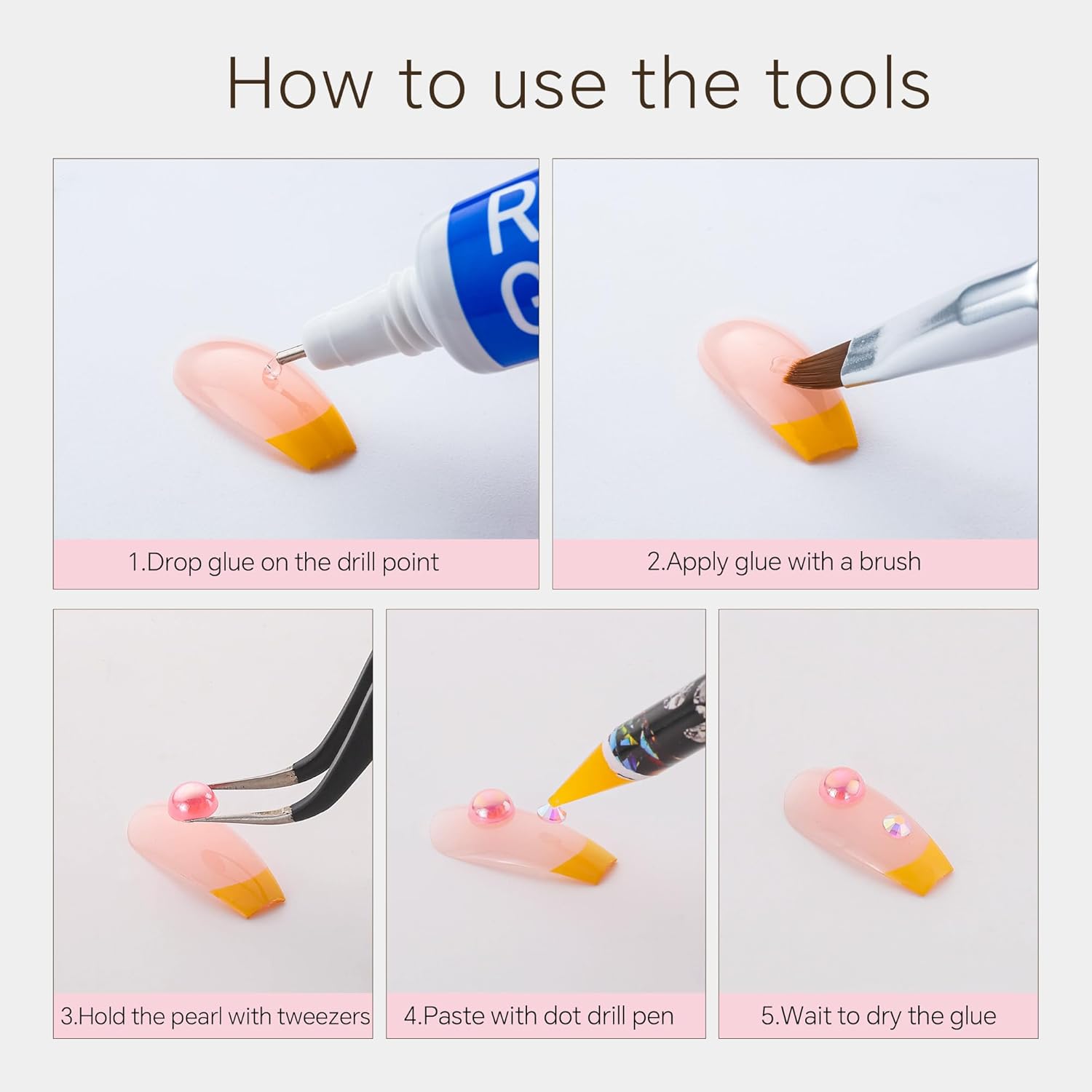 • Useful tools - These pearls and rhinestones have a flat back, which is excellent for easy placement.and you can pick up any large or small pearls and rhinestones with the crayons we bring along. And use the brush to smooth out the Gel , these tools will work very well.